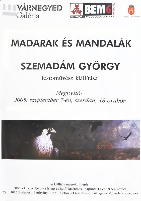 Madarak és Mandalák, Szemadám György festőművész kiállítása a Várnegyed Galériában, 2005, plakát, papír, jelzés nélkül...
