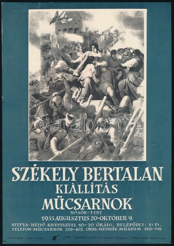 Székely Bertalan kiállítás, Műcsarnok, 1955. augusztus 20-október 9. Kisplakát/villamosplakát. Ofszet, papír...