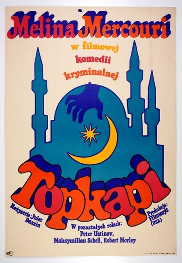 Plakat filmowy form. 83,3x57,7 cm. Zarys meczetu Hagia Sophia w Stambule. Plakat sygnowany krypt. "Żb". Film amerykański (oryg. "Topkapi"). Reż. J. Dassin. Wyst. M. Mercouri, P. Ustinov, R. Morley. Podklejone niewielkie naddarcie górnej krawędzi, stan dobry.