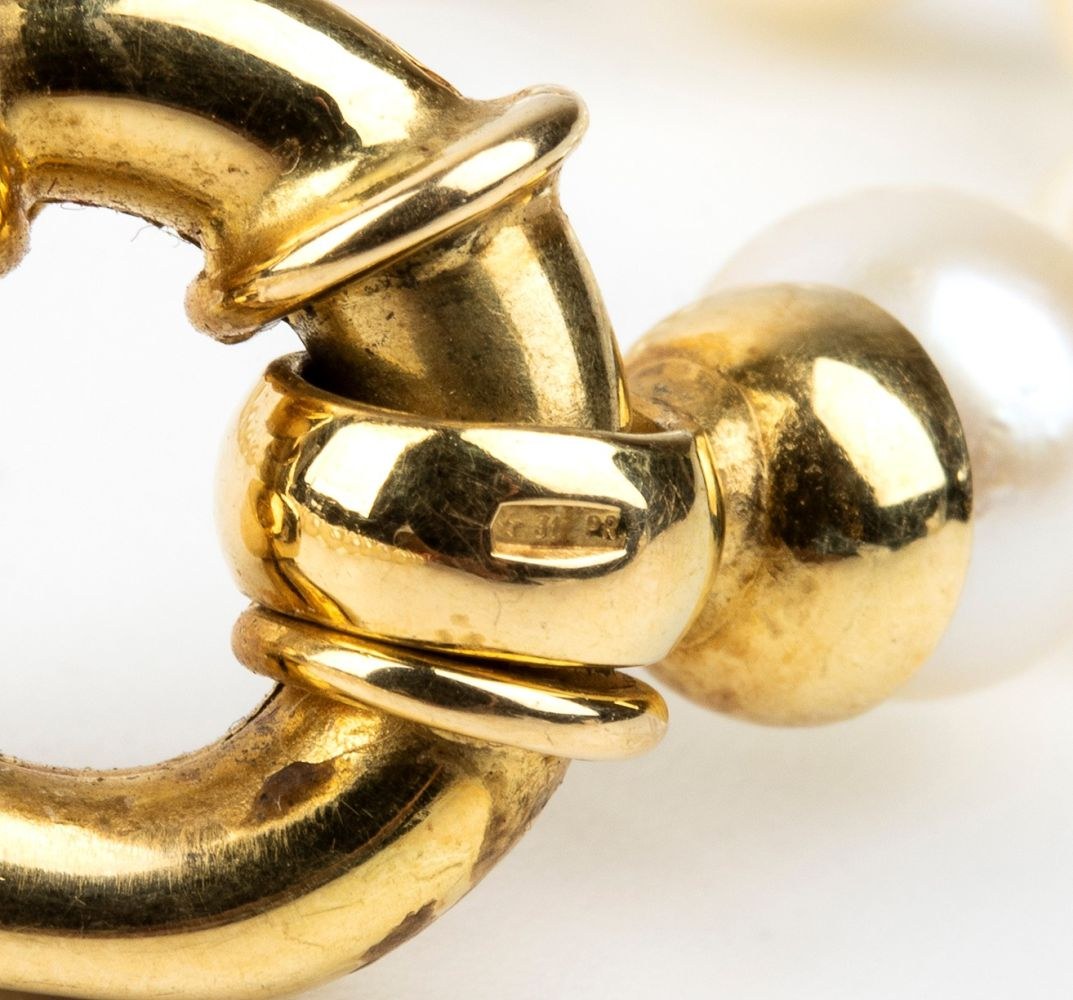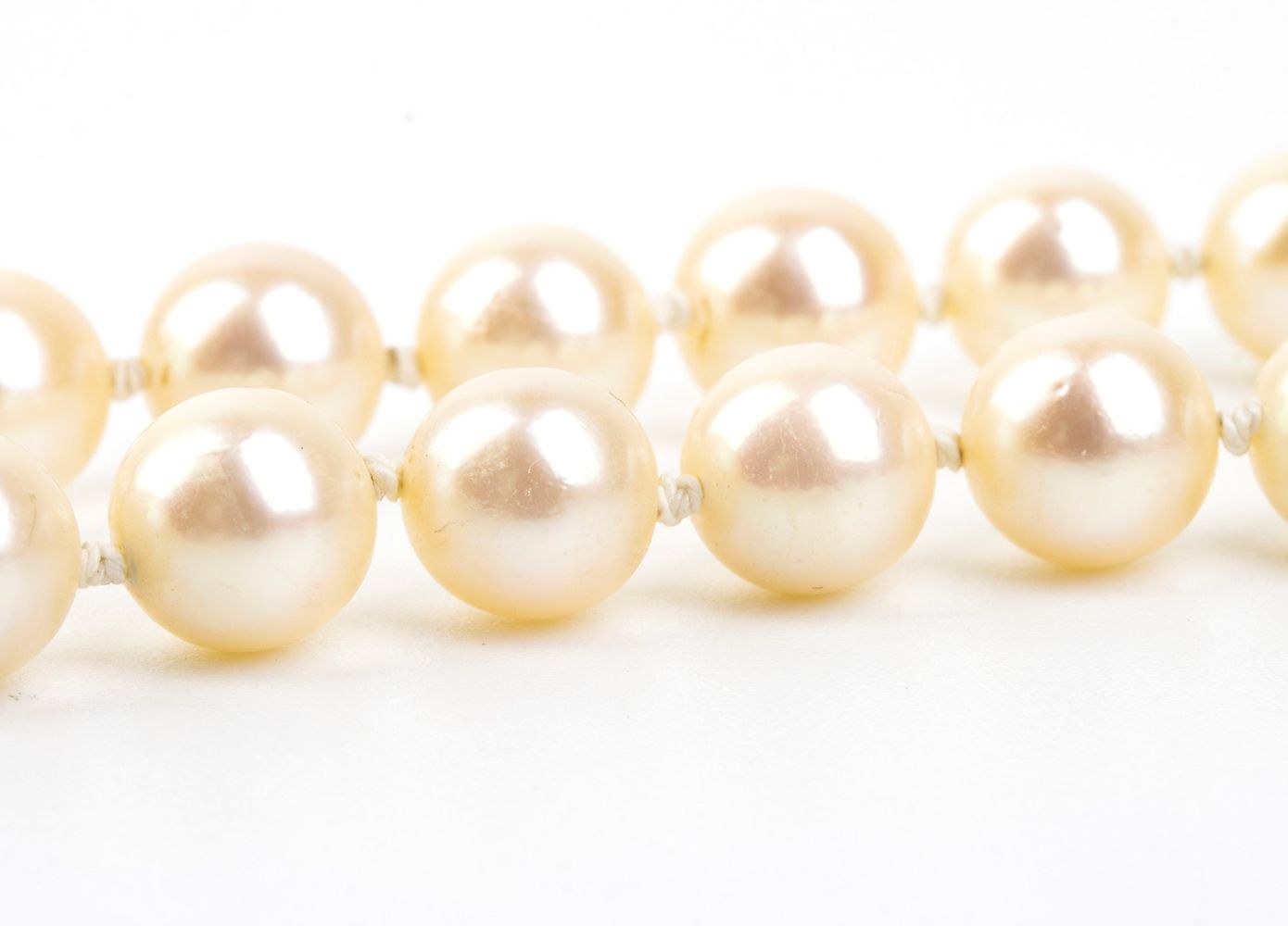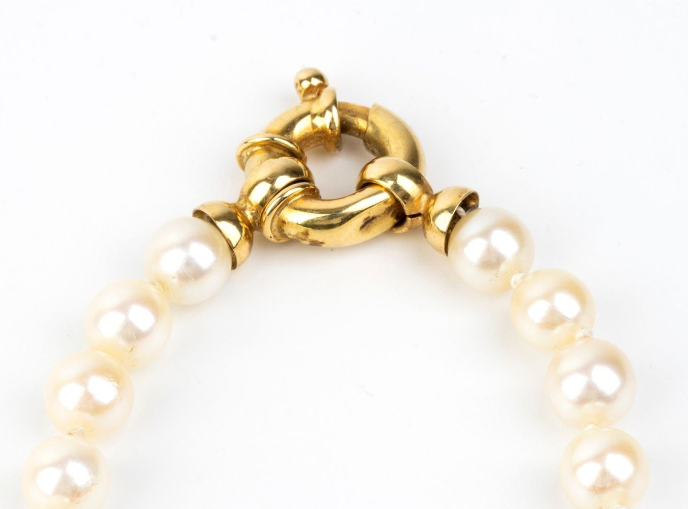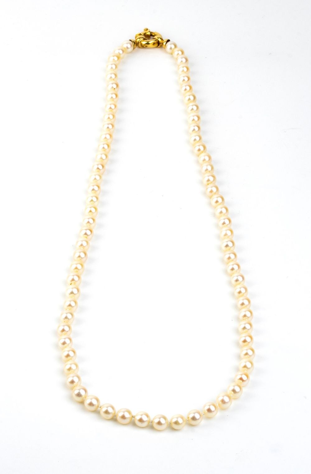 one row cultured pearls, diameter 7-7.5 mm. Yellow gold lobster clasp. Hallmarked "31 PR".