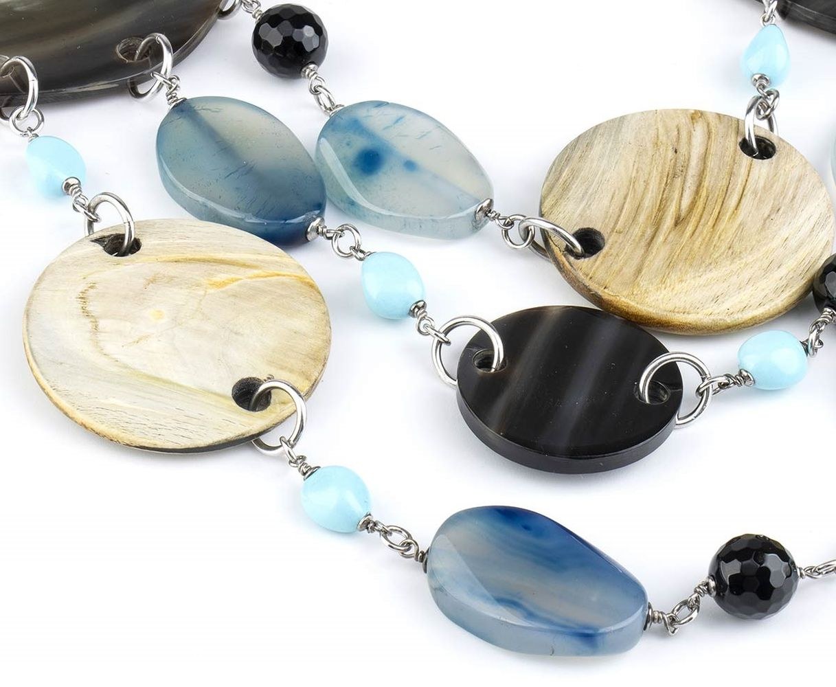 Sterling silver, jet, agate,onix and horn.