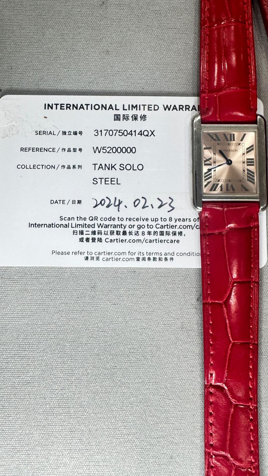 BRAND CARTIER MODEL (WATCH) TANK SOLO REFERENCE NUMBER 3170 MOVEMENT QUARTZ CASE MATERIAL STEEL STRAP MATERIAL STEEL YEAR OF PRODUCTION 2023 CONDITION NEW ORIGINAL DOCUMENTS AND BOX MOVEMENT QUARTZ CASE CASE MATERIAL STEEL DIAMETER 24 X 31 MM WATERPROOF 3 ATM BEZEL MATERIAL STEEL GLASS SAPPHIRE GLASS ROMAN NUMBERS ON THE DIAL STRAP STRAP MATERIAL STEEL STRAP COLOR STEEL FOLDING CLASP CLASP MATERIAL STEEL