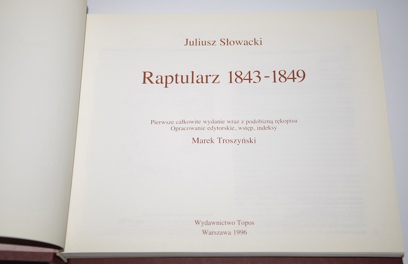 [nakład 200 egz.!] SŁOWACKI Juliusz - Raptularz 1843-1849.