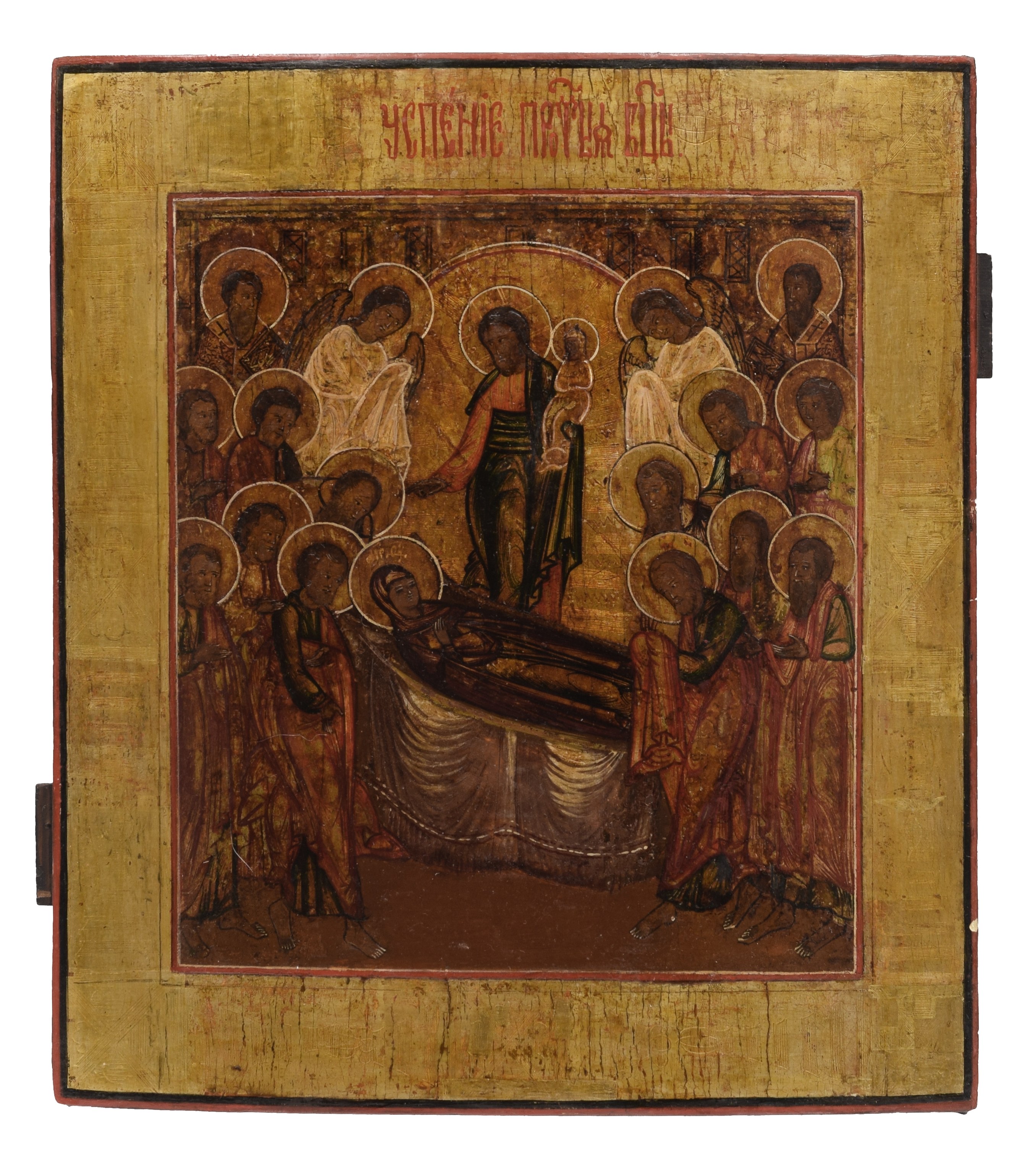 Scena Zaśnięcia Marii Panny to przedstawienie śmierci Marii, matki Chrystusa („Koimesis” „Zaśnięcie”), w otoczeniu apostołów. W centrum przedstawienia znajduje się stojący przy łożu swej matki Zbawiciel, trzymający w dłoniach jej duszę w postaci niemowlęcia w powijakach (prześcieradło pogrzebowe). Chrystus przybył po duszę Marii ze wspaniałością równą Przemienieniu. Postać odzianego w czerwono-niebieskie szaty Chrystusa otoczona mandorlą.