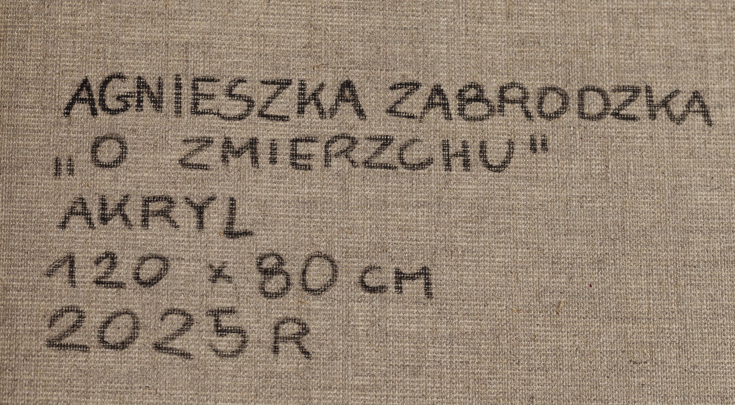 sygnowany, datowany i opisany na odwrociu: 'AGNIESZKA ZABRODZKA | "O ZMIERZCHU" | AKRYL | 120 x 80 CM | 2025 R'