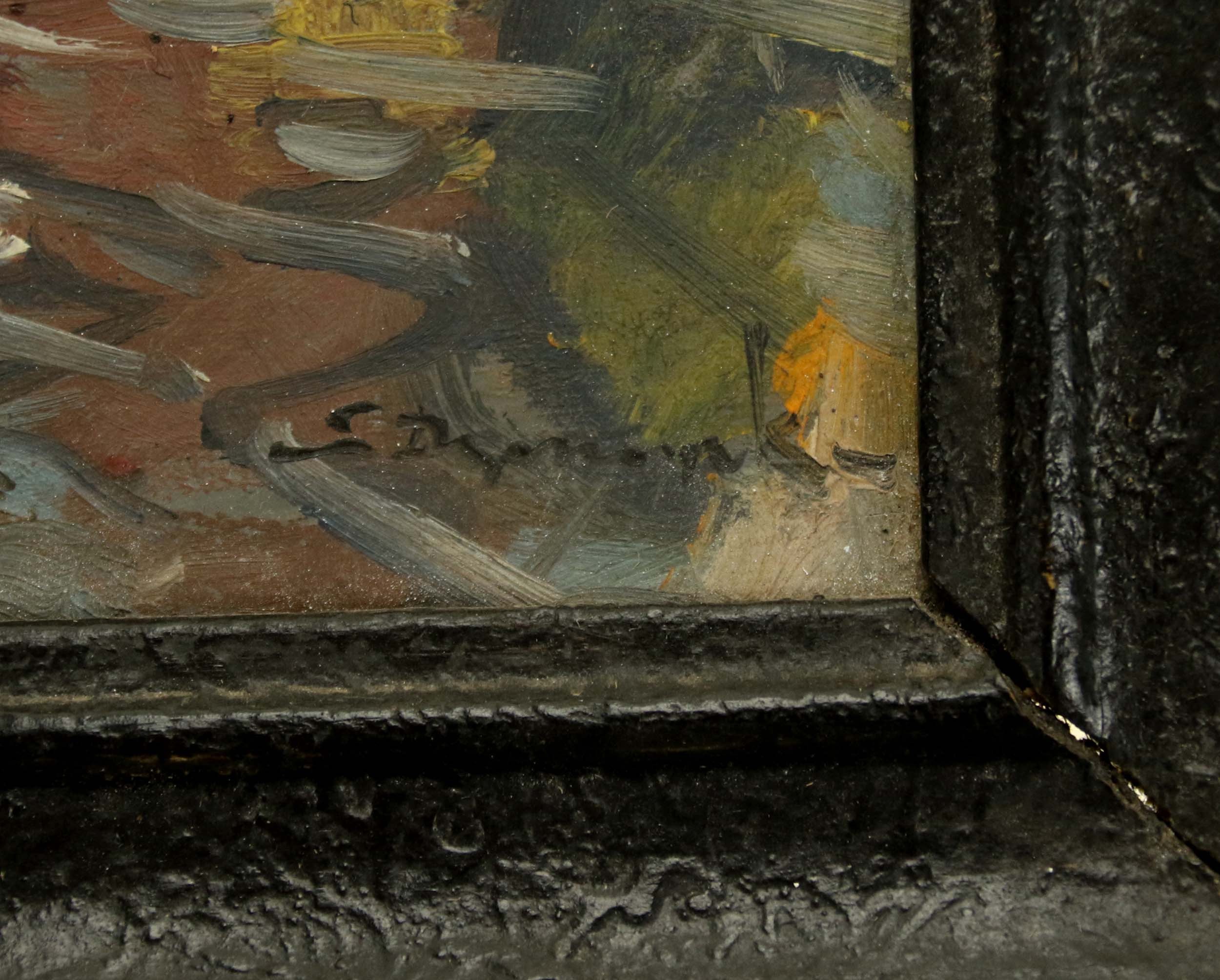 Olej, tektura, sygn. p.d.: E. Dzierzencki, wym. 22,5 x 18, wym. ramy 31 x 26,5 cm
