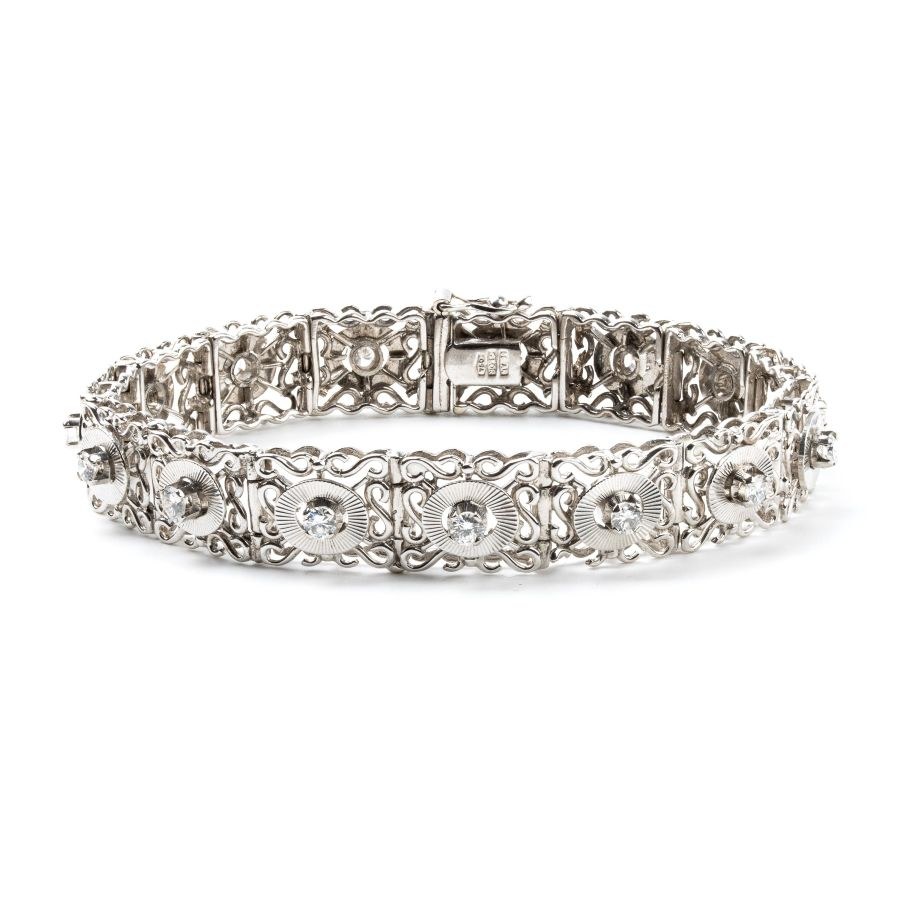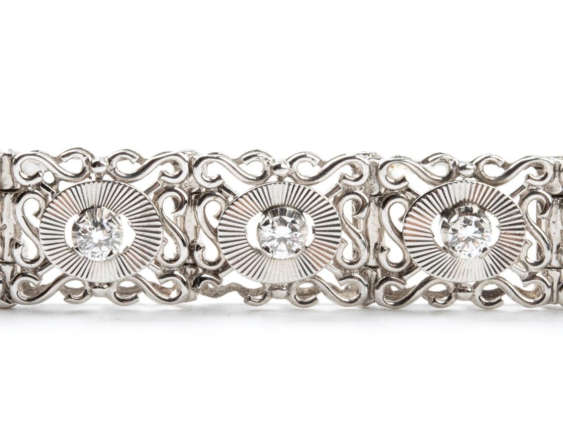 18k white gold, set with 15 round brilliant cut diamonds, approx. 1.50 ct, F-G, VS.
