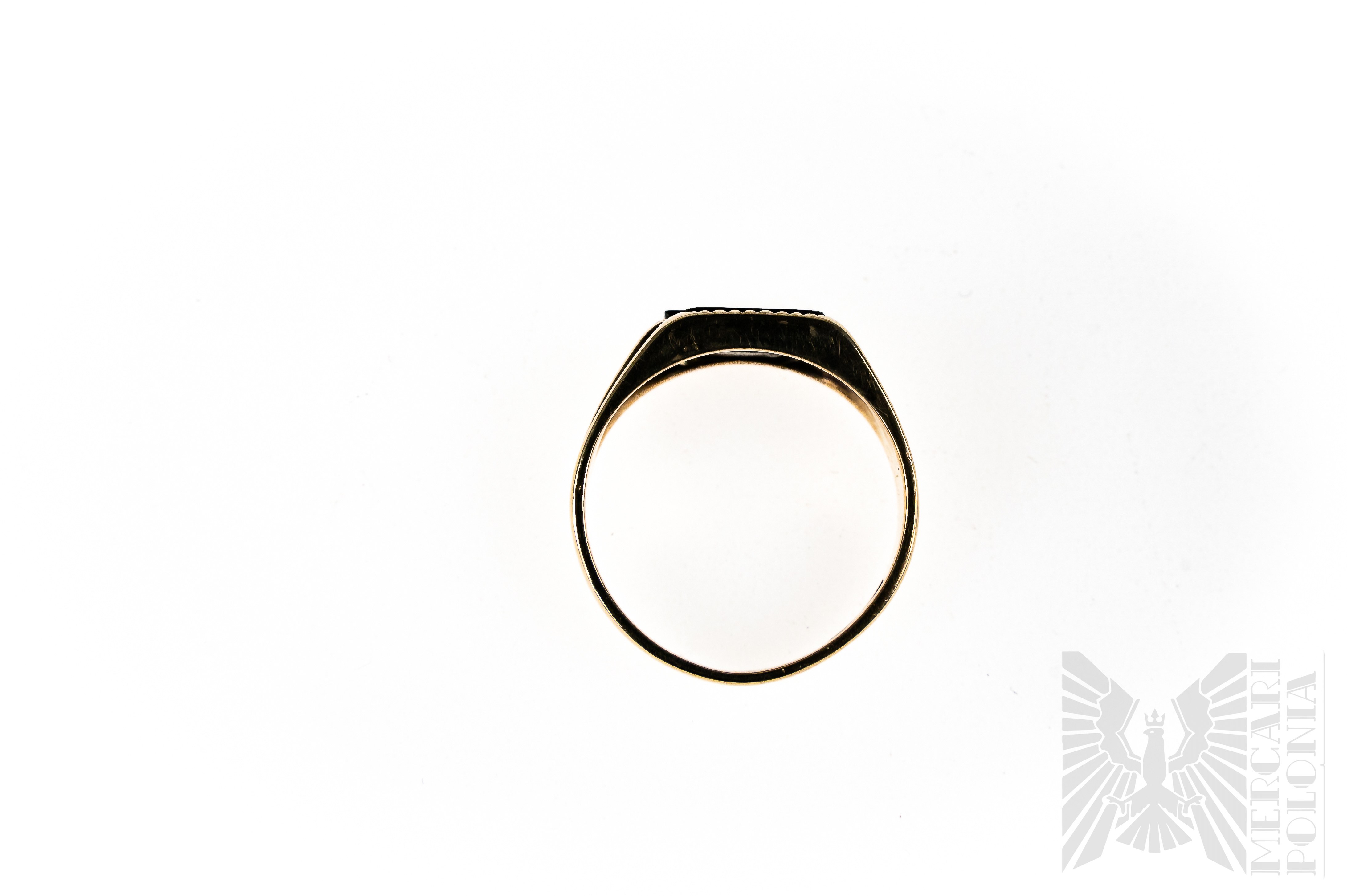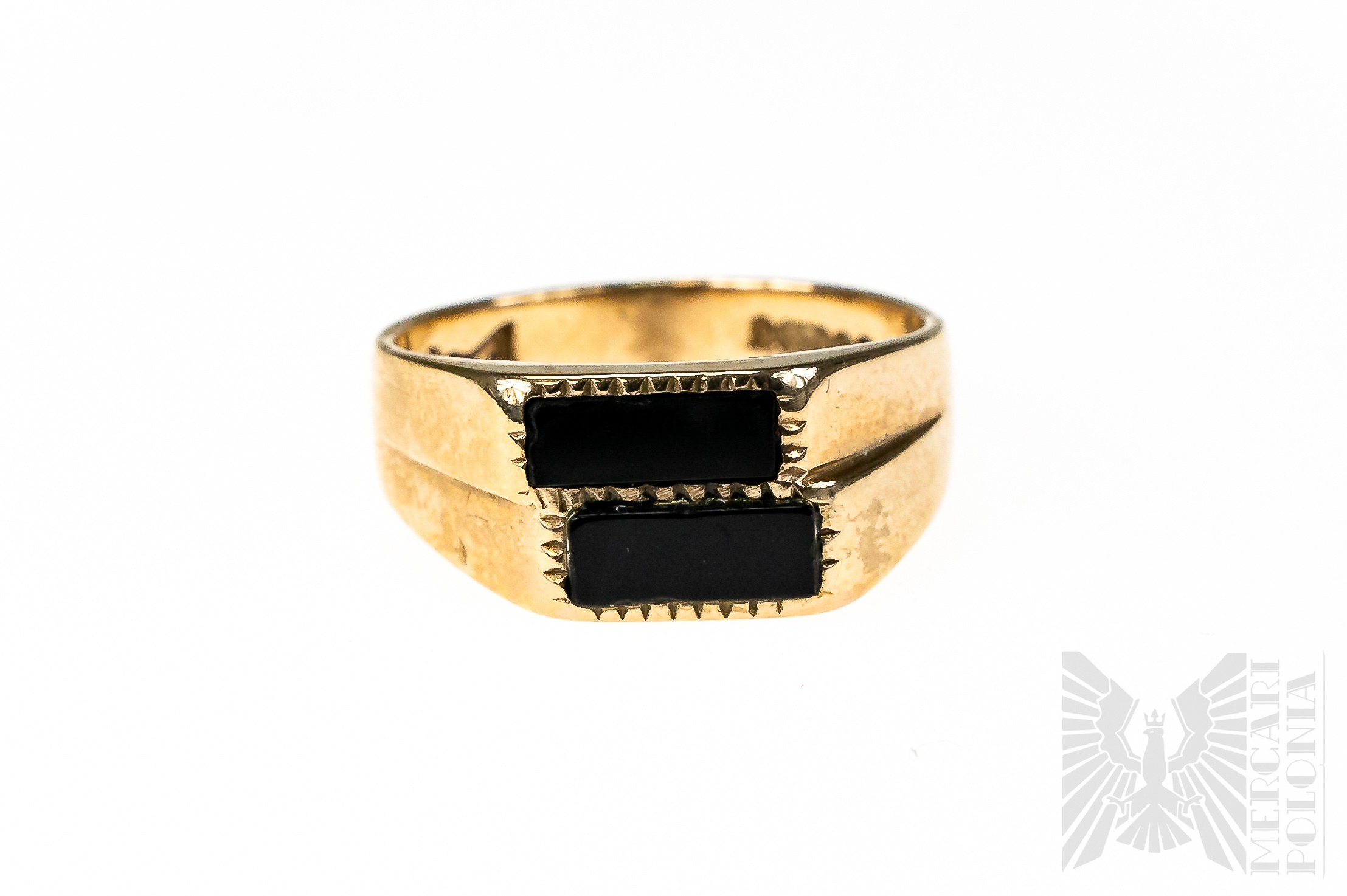 Sygnet męski z onyksem, złoto 375/9K, masa wyrobu 3,45 gram, rozmiar 15, pochodzenie Londyn, Anglia rok 1966