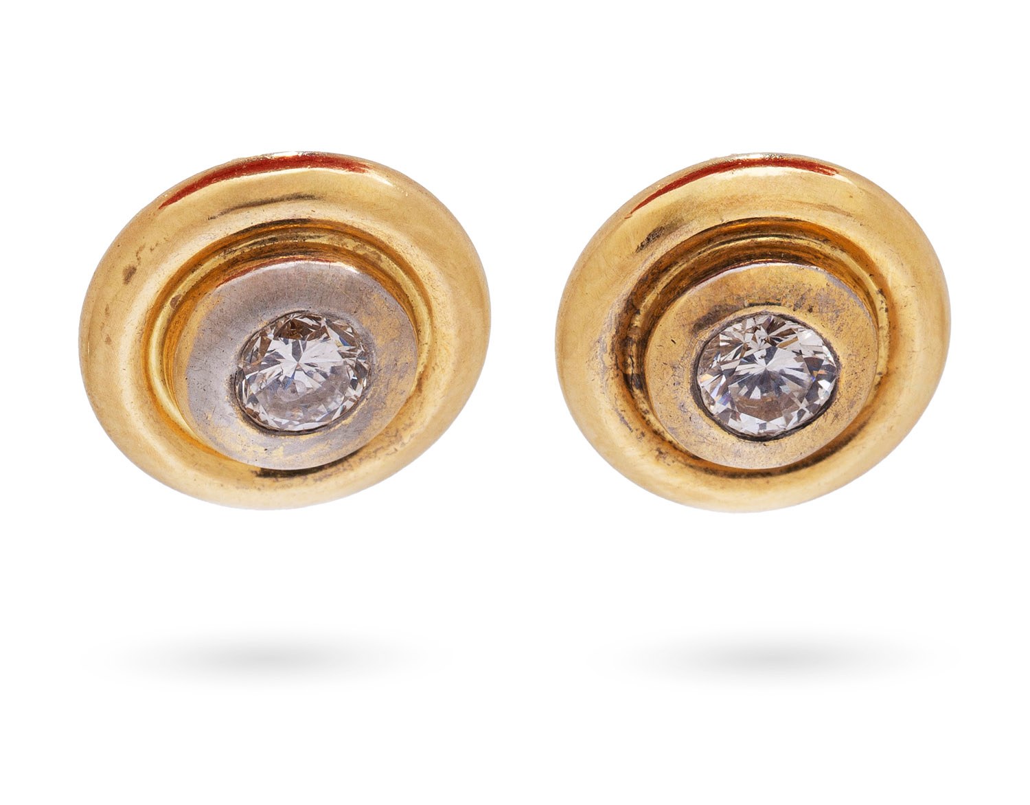 złoto pr. ~ 0,750, 2 brylanty ł. ~ 0,34 ct H/SI2, masa: 4,19 g, śr.: 1 cm