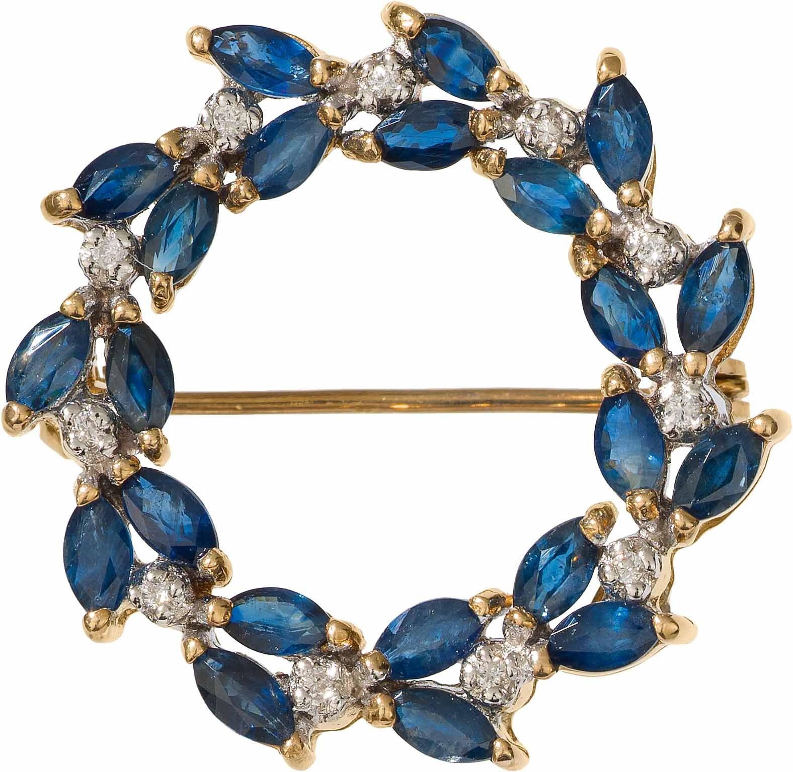 14k gold, marquise cut sapphires with totall. approx. 1.20 ct, brilliant cutdiamonds with totall. approx. 0.15 ct