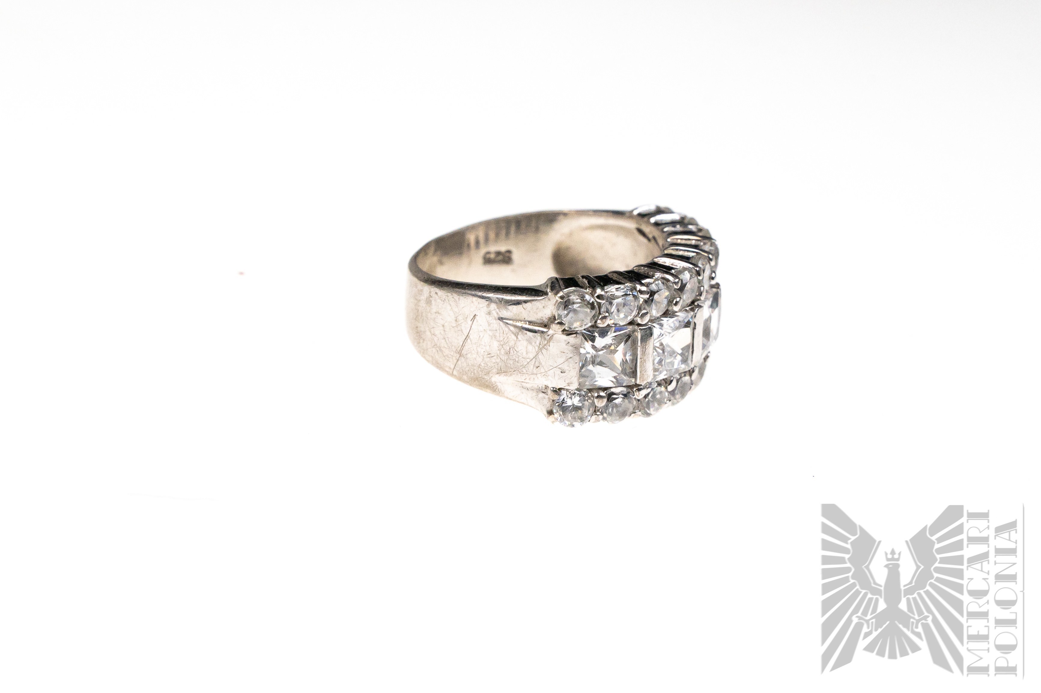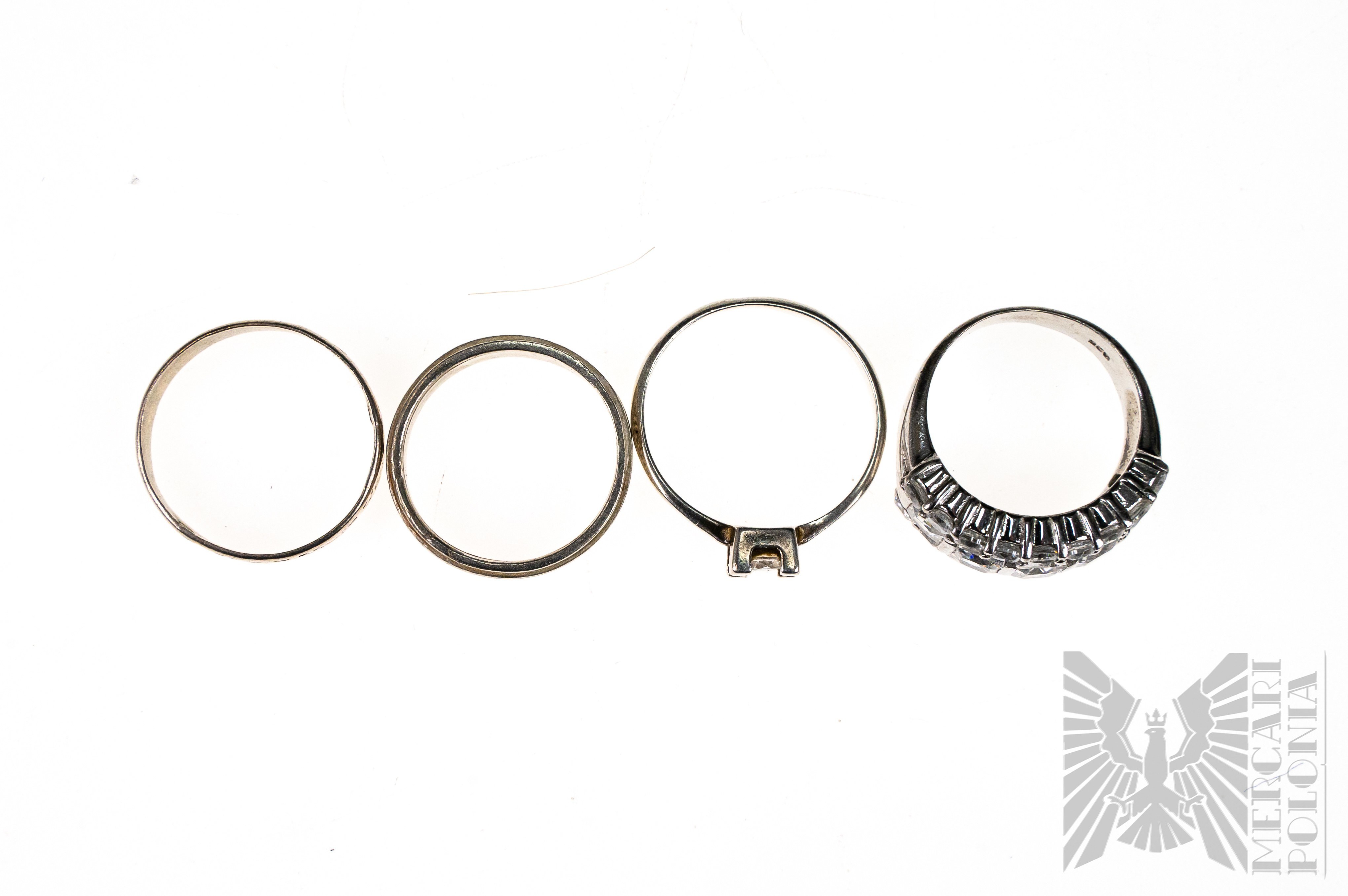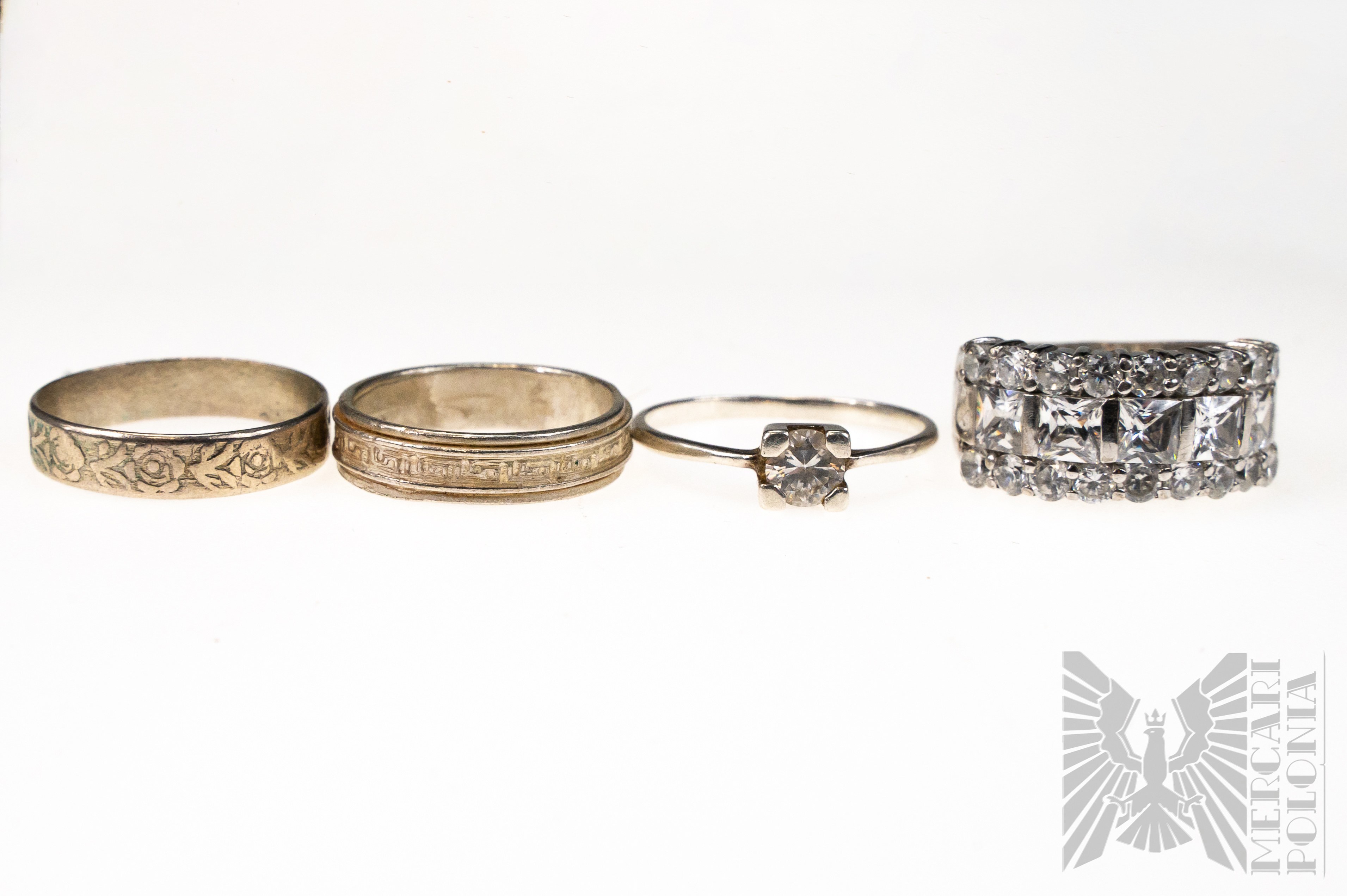 Zestaw Czterech Pierścionków, Jedna obrączka z kwiatami, jeden z pojedynczą cyrkonią, jeden z wieloma cyrkoniami i jedna obrączka z greckimi wzorami, Masa wyrobów 12.64 gram, rozmiar kolejno 16/17, 17, 13 i 12 - Srebro 925