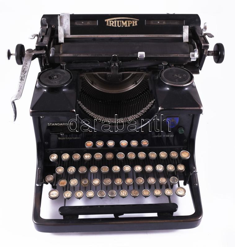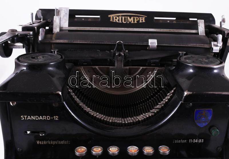 1937-1940 Triumph "Standatrd 12" írógép, magyar billentyűzettel, eredeti fazettált üvegeivel, 36x26 cm /// 1937...