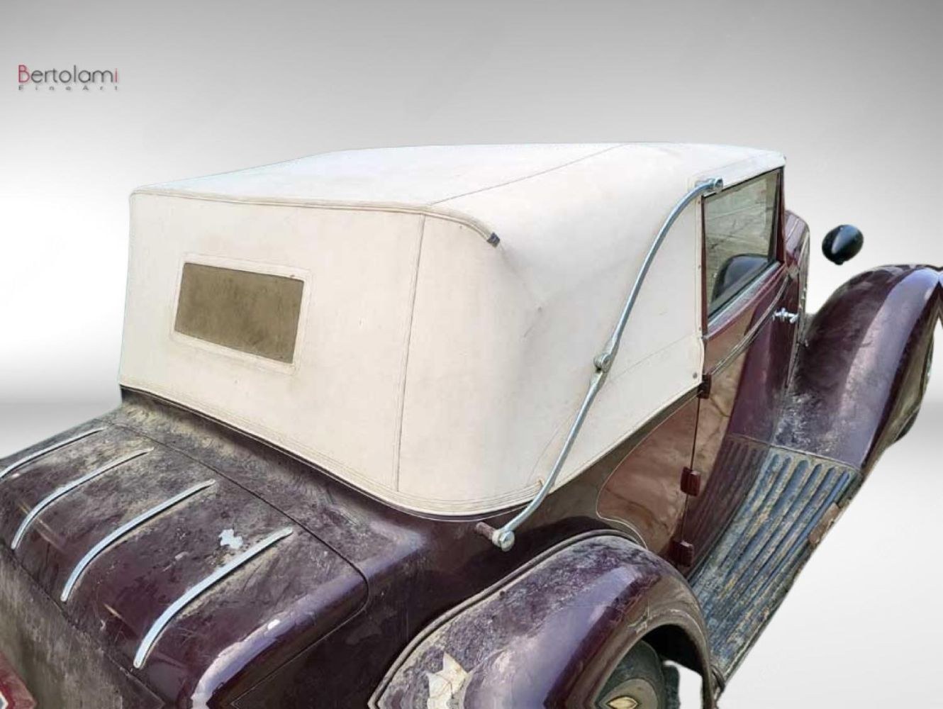 Vehicle History:Extremely rare car - Barn FindProduced by McLaughlin Buick Canada (the Buick factory in Canada that manufactured cars for the British Empire) in 1933 and coachbuilt in very few units by the renowned English coachbuilder Carlton Carriage Company with aluminum bodywork (the exact number of cars produced is unknown, but possibly no more than ten). No other cars like this have been found through research, except for a drawing in the original advertisement, and it is possible that this is the only one remaining in circulation.In 1973, the car was imported to Italy from the United Kingdom by a well-known textile industrialist from Chieri (Turin) and has remained in the same family since then. There are no documents from the customs at the time, but there are photos of when the car arrived in Italy.In the late 1970s, the car underwent a restoration of the bodywork, interior, and convertible top. It was then stored in a barn on the estate until it was acquired by the current owner.Mechanically, the car is in working condition. The engine was replaced in the 1970s because the original block was cracked, but the original engine from when the car was first built is also present.