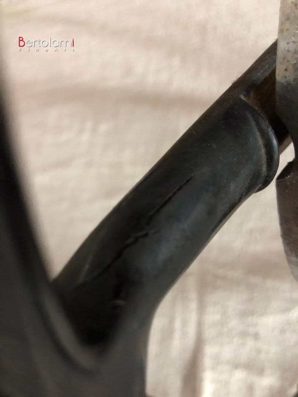 The steering wheel may show a very small crack, approximately 2 cm in length, on the bakelite near the left grip, specifically on the wheel spoke. Despite this, it remains in overall good condition. It comes complete with the horn button. The measurements are standard for a steering wheel.