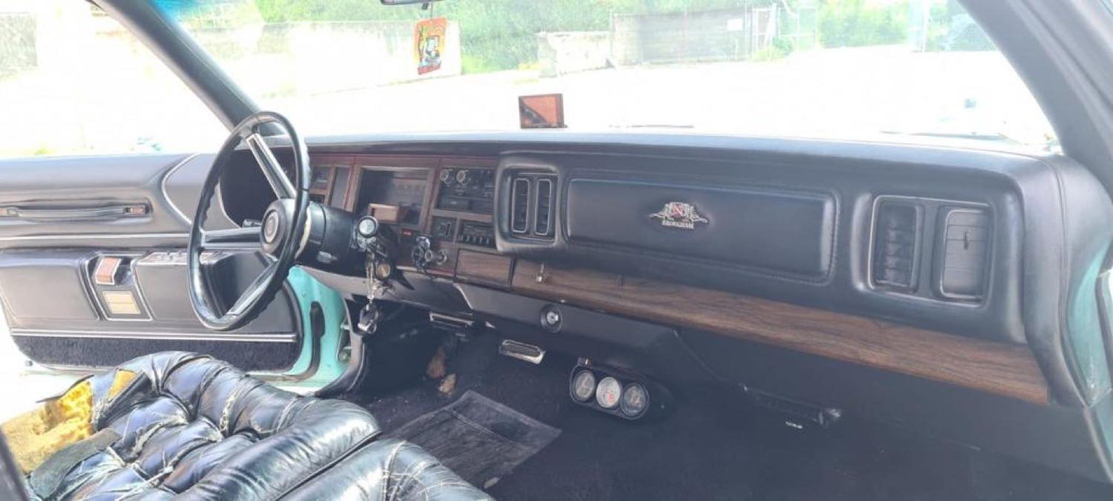 Dashboard instruments: The steering wheel is original, from the first series of Chrysler, with a sporty three-spoke design. The dashboard is in perfect condition, and the speedometer, heater, and radio are functional but not connected.