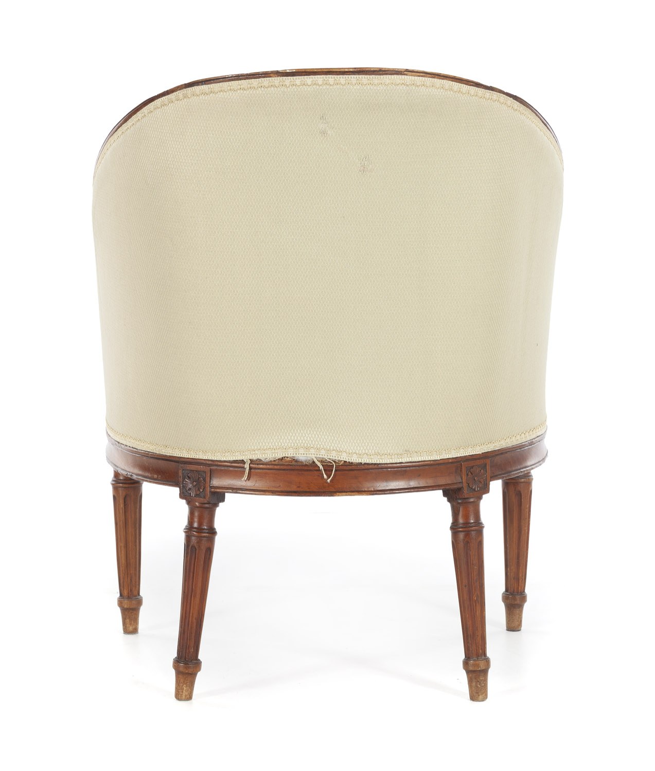 zabrudzenia i przetarcia tkaniny, drobne rozdarcie na plecach