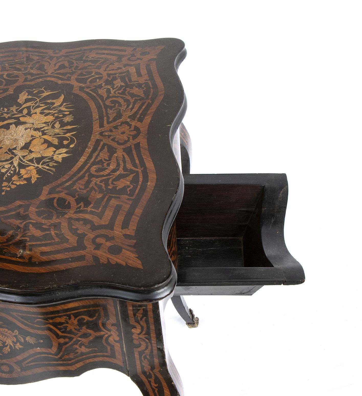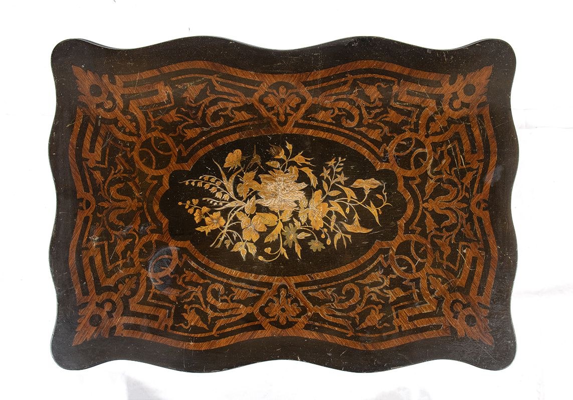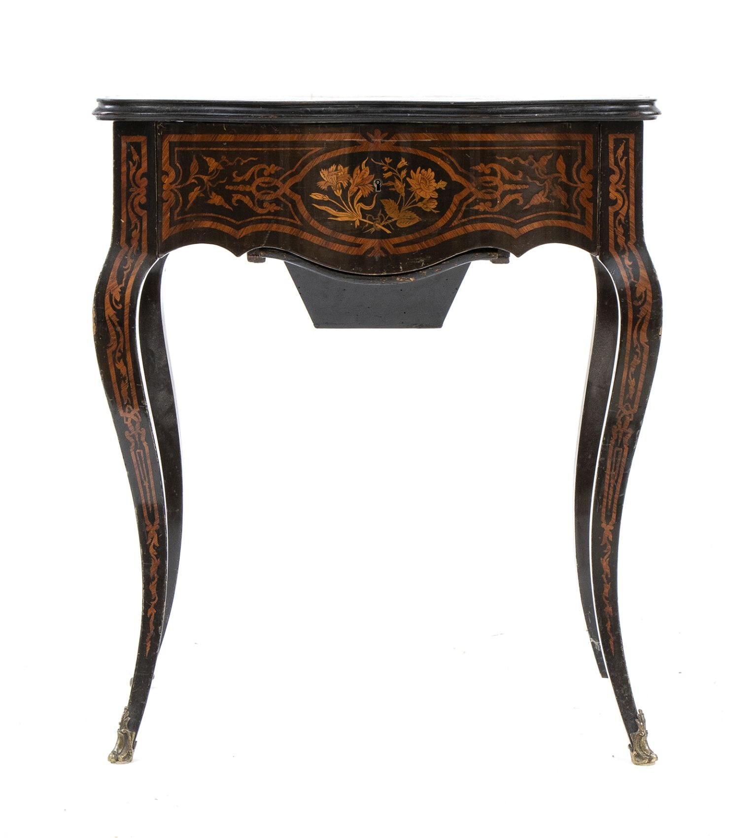 French Napoleon III inlaid dressing table - 19th century, in ebonised wood and purple ebony with stylised floral inlays in purple ebony. Height x width x depth: 71 x 61 x 43 cm. Item condition grading: **** good.