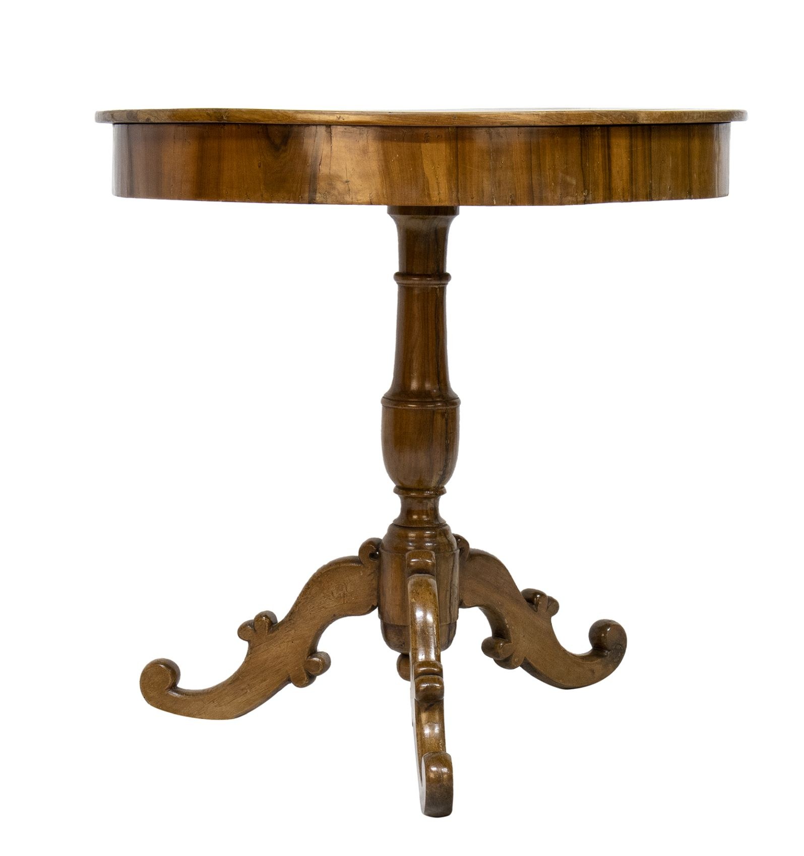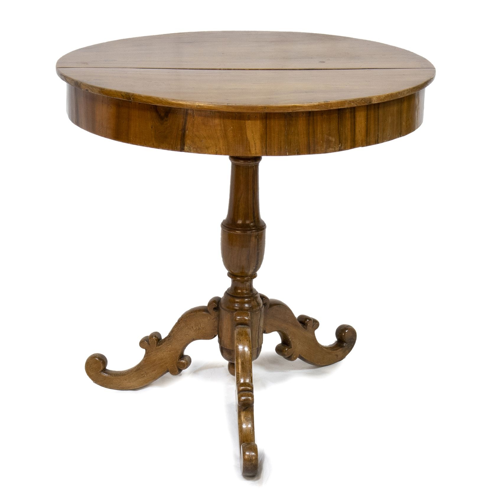 Italian walnut centre table - 19th century, made of walnut with a single central leg, one part of the top can be raised and conceals compartments. Height x circumference: 73 x 74 cm. Item condition grading: **** good.