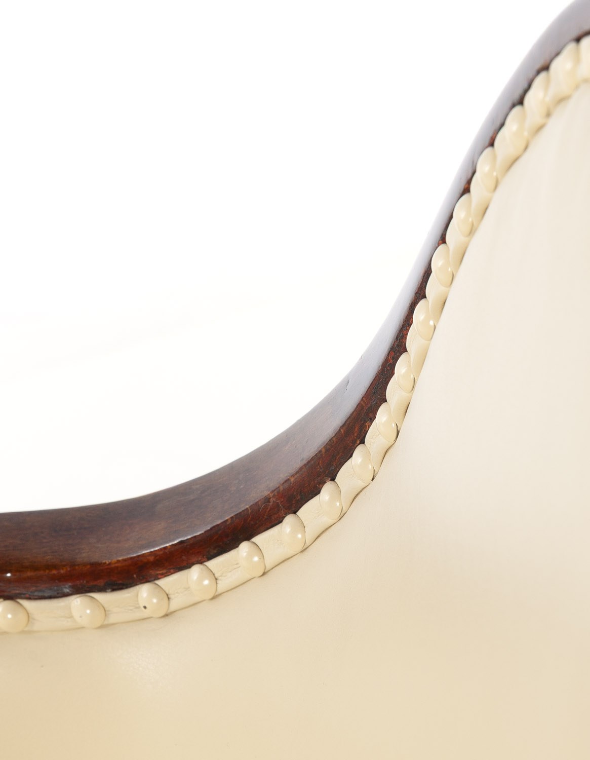 sofa: brak stopki mosiężnej, przetarcia drewna