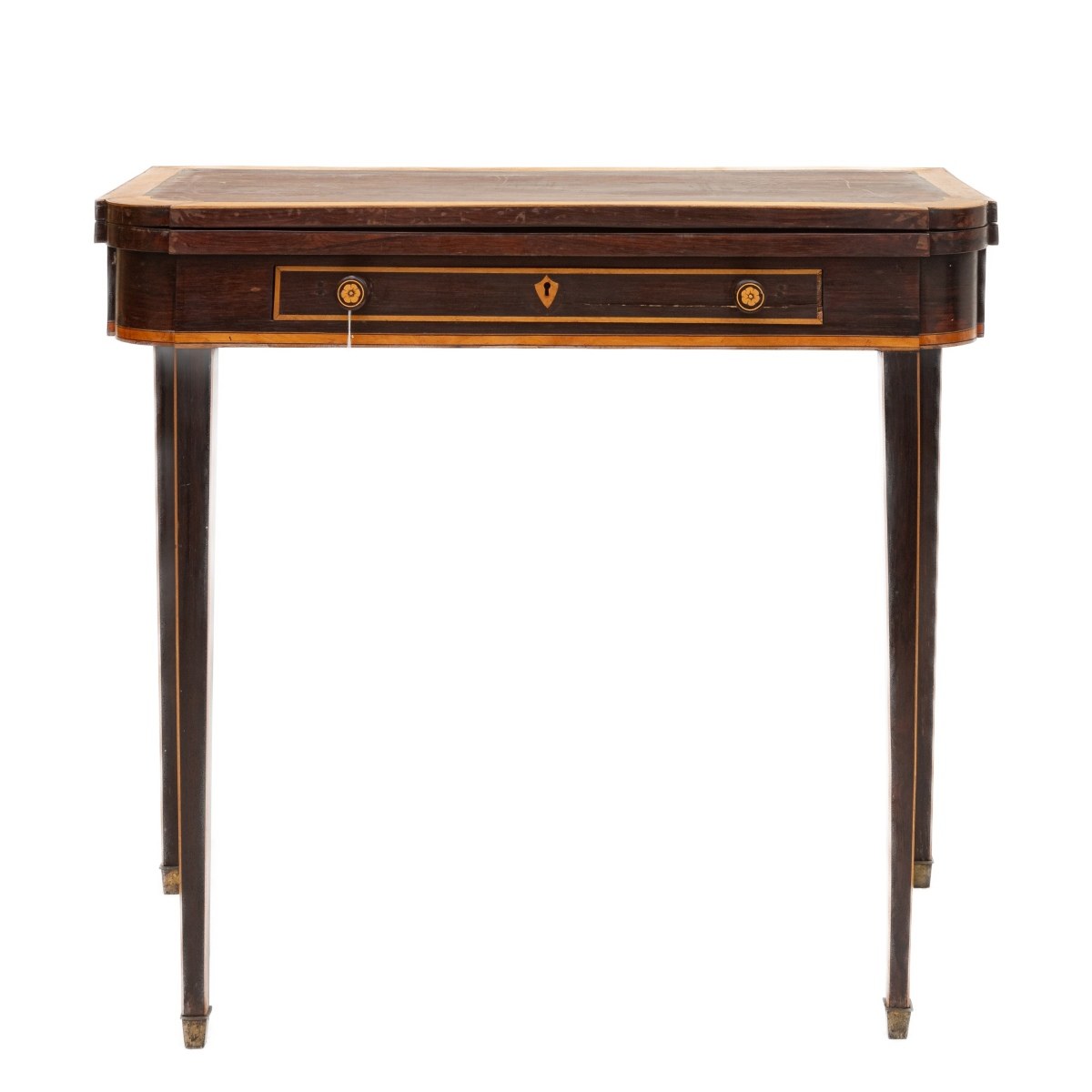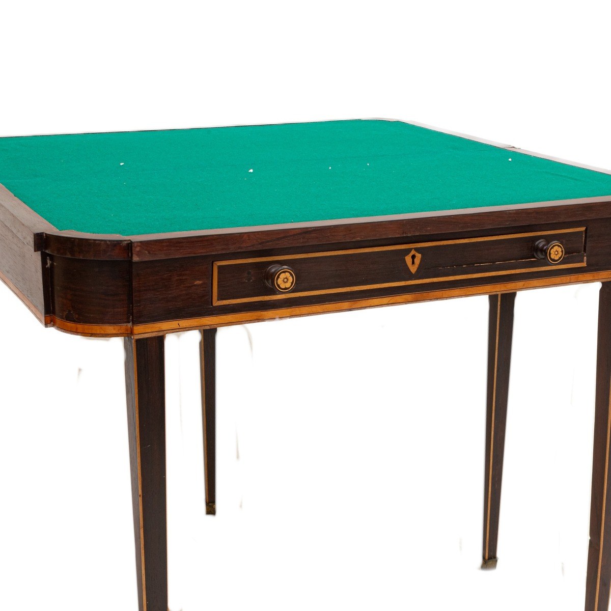 with one drawer, top in green cloth with rectangular finishes in fruit wood.