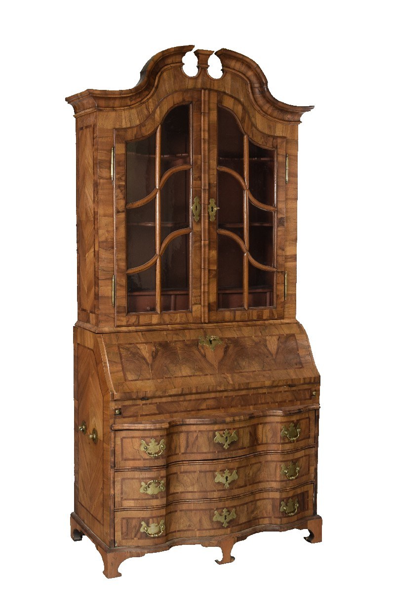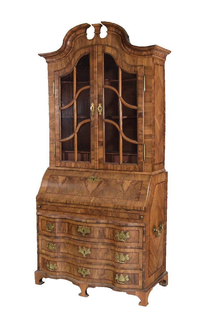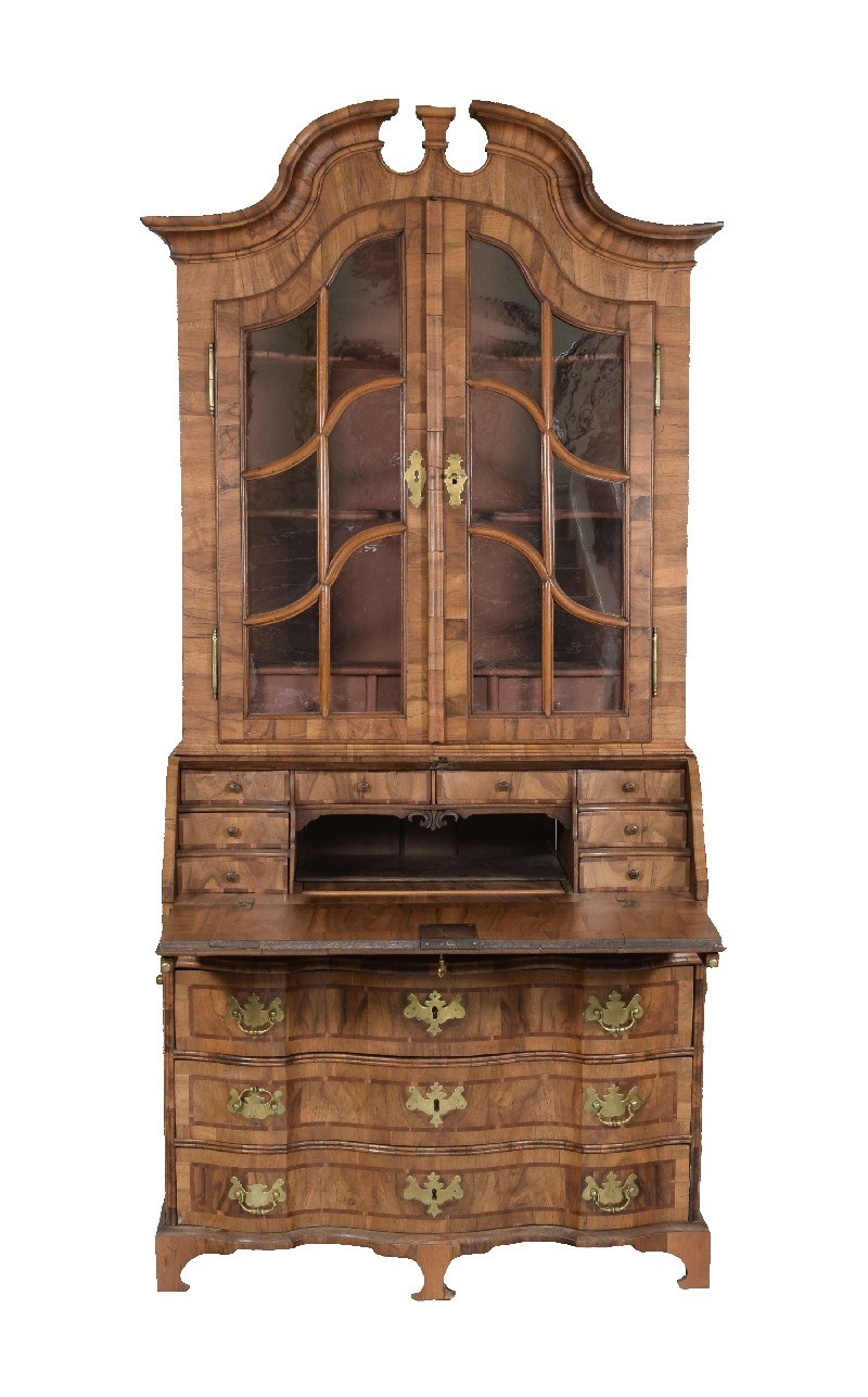 Rozbudowana szafa z sekreterą do pisania i przechowywania książek, dokumentów oraz utensyliów do pisania. O formie i dekoracji typowej dla mebli wykonywanych na terenie Dolnej Saksonii w brunszwickim ośrodku meblarskim, około połowy XVIII wieku.
