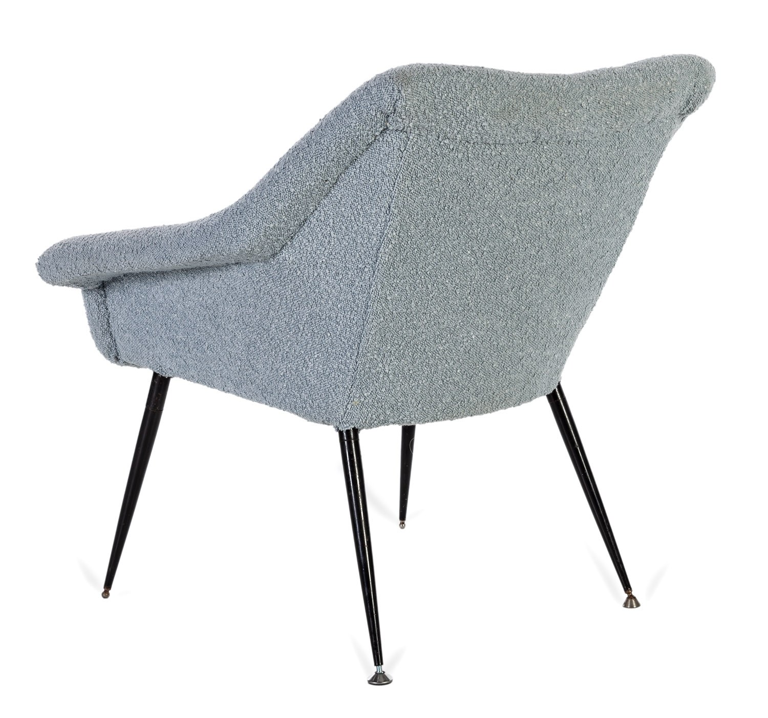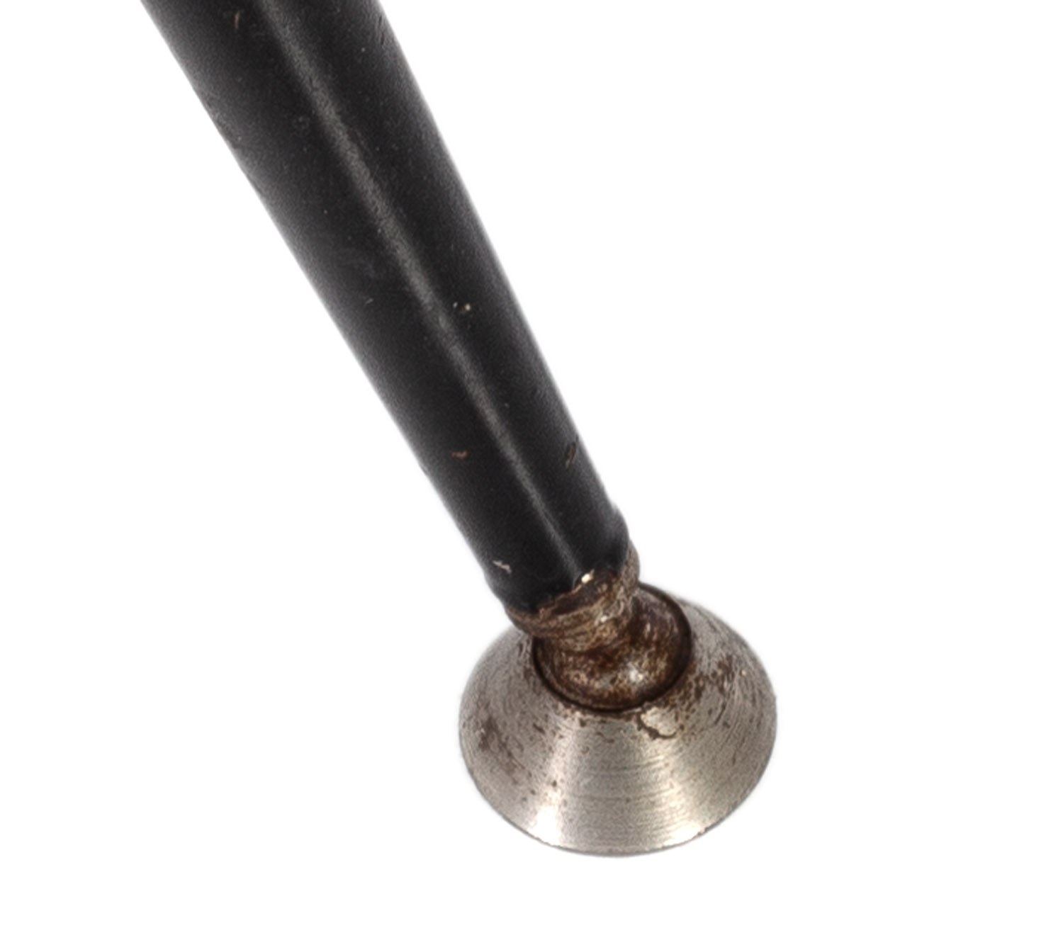 delikatne zabrudzenia tapicerki, brak pary stopek, delikatne zarysowania nóżek, jedna ze śrób stopek wymieniona na nową