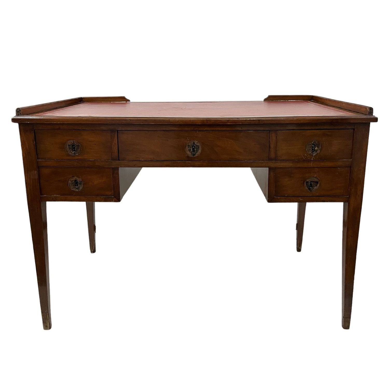 Wooden desk with 2+1+2 drawers, top covered in red leather, Neapolitan period Louis XVI, veneered in cherry wood. Dimensions: 114x66x78.