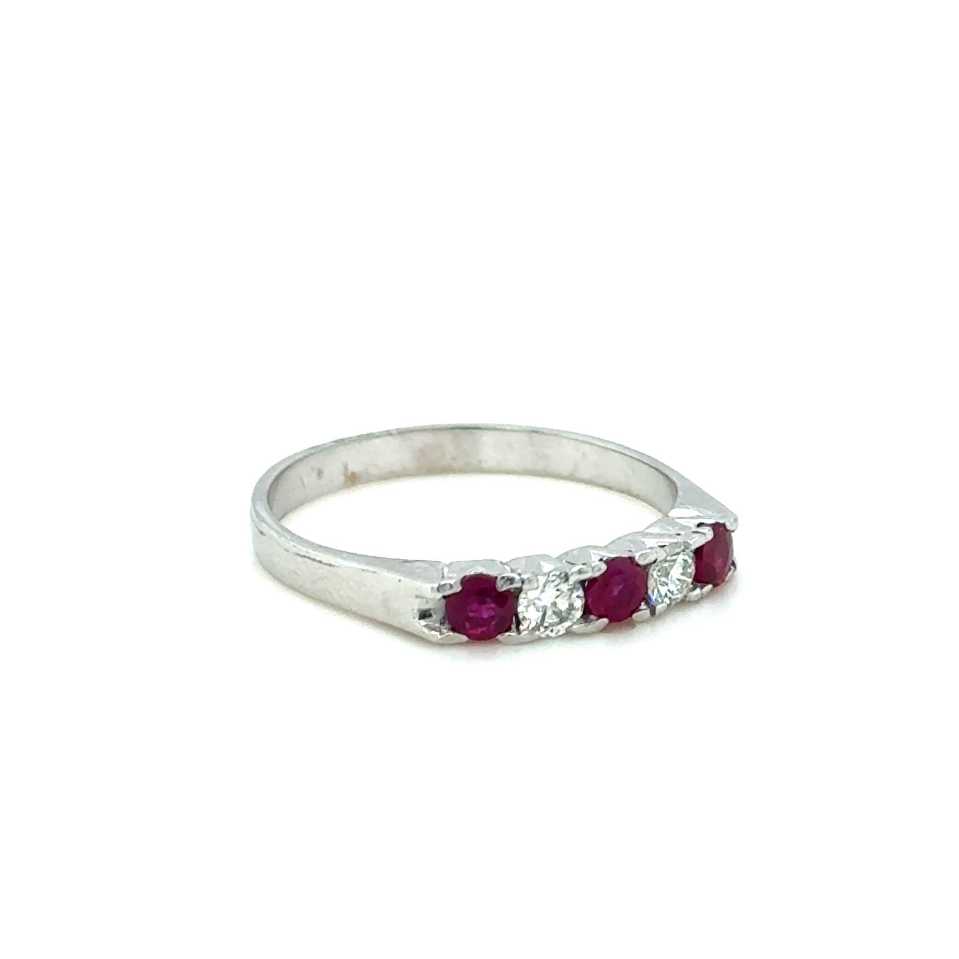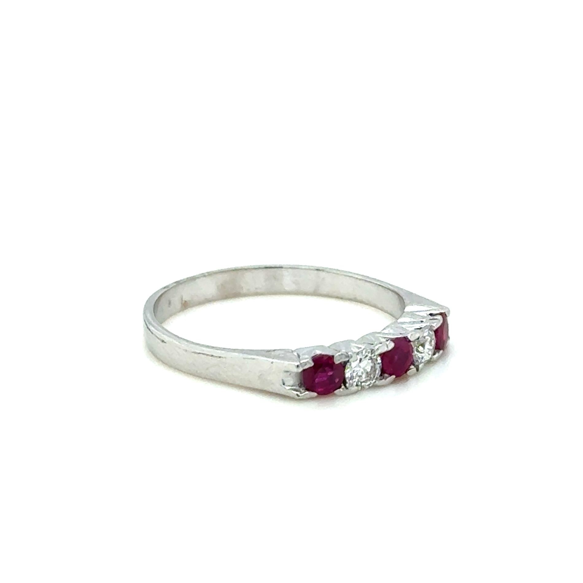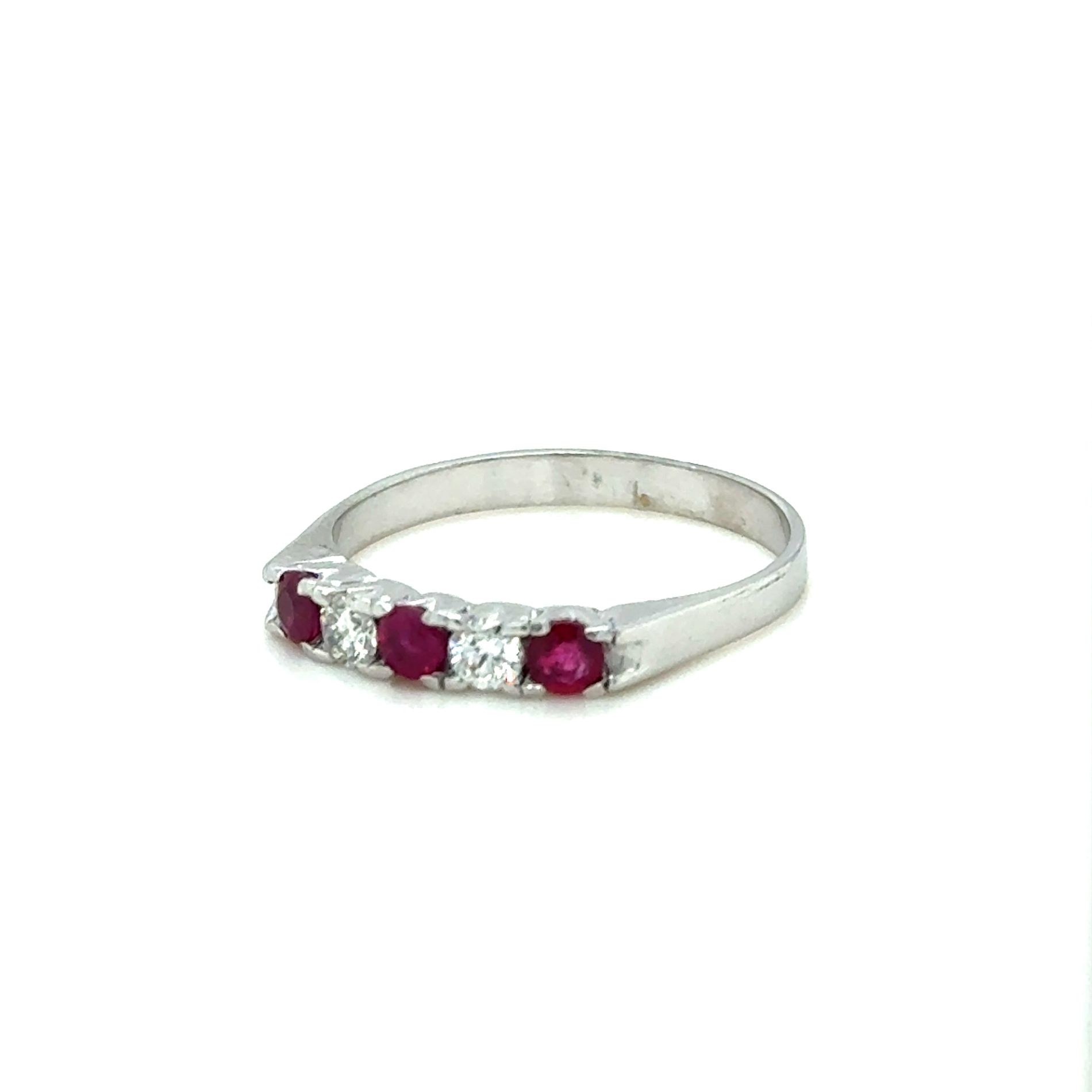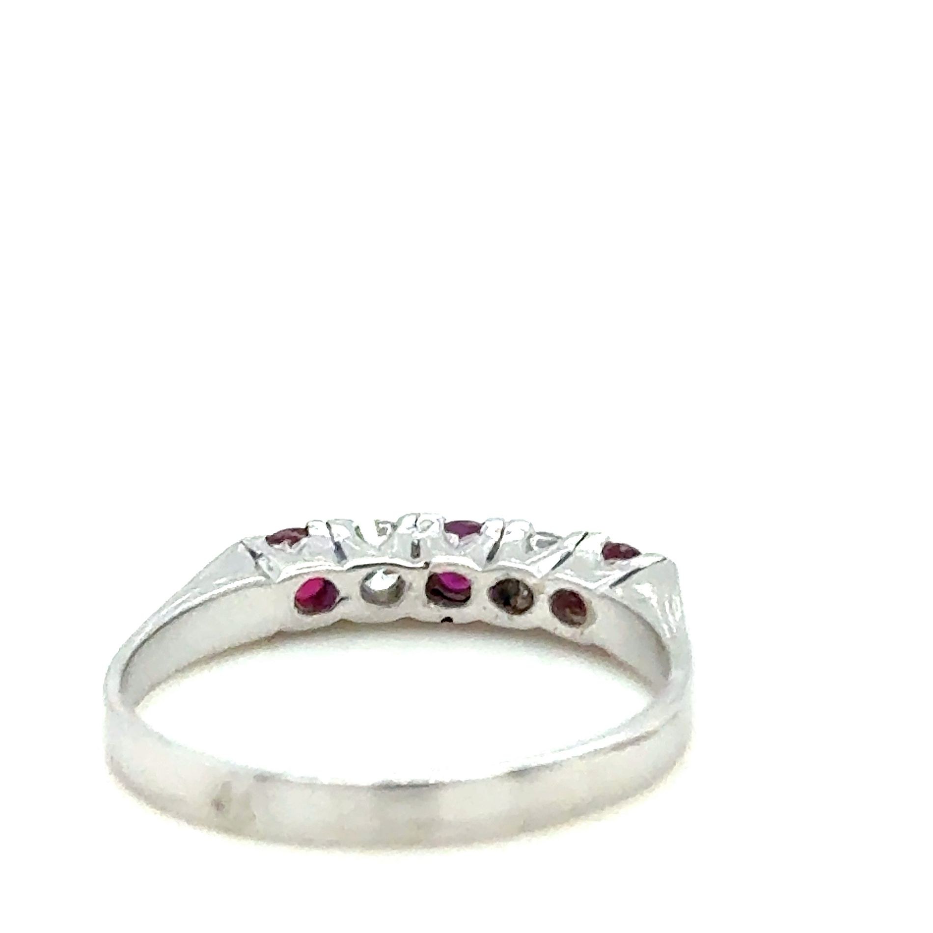 14K WHITE GOLD RING 2.18G NATURAL DIAMONDS FOR 0.18 CARATS F COLOR VS CLARITY AND NATURAL RUBIES FOR 0.27 CARATS - SIZE 57 - A3706 - AUCTION COMMISSION 25%