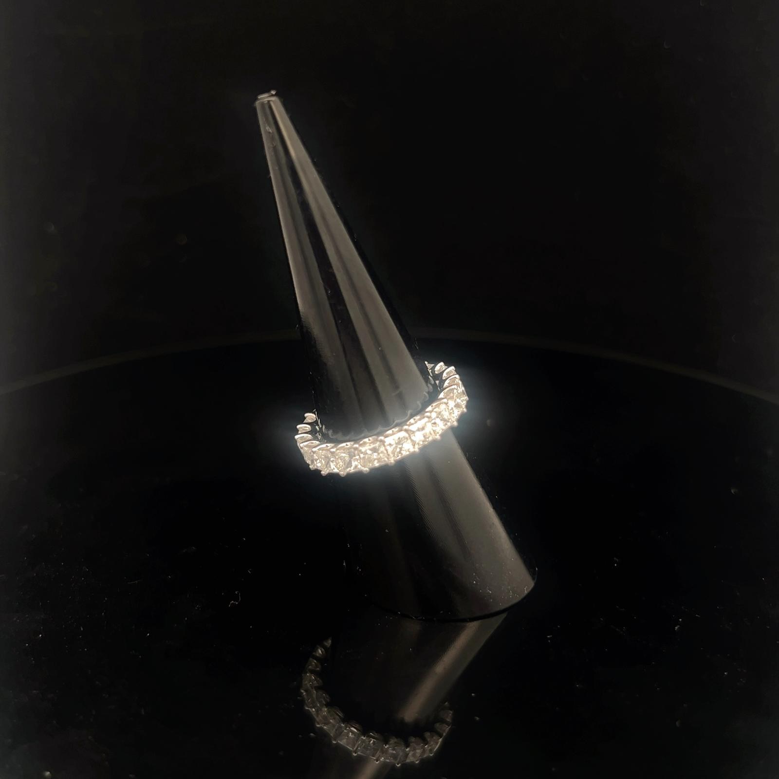 THIS 2.25-GRAM 14K WHITE GOLD RING FEATURES HIGH-QUALITY LAB-GROWN DIAMONDS, WEIGHING A TOTAL OF 3.07 CARATS. THE DIAMONDS ADD A TOUCH OF ELEGANCE AND BRILLIANCE, MAKING THIS PIECE PERFECT FOR ANY SPECIAL OCCASION. 442 LG - AUCTION COMMISSION 25%