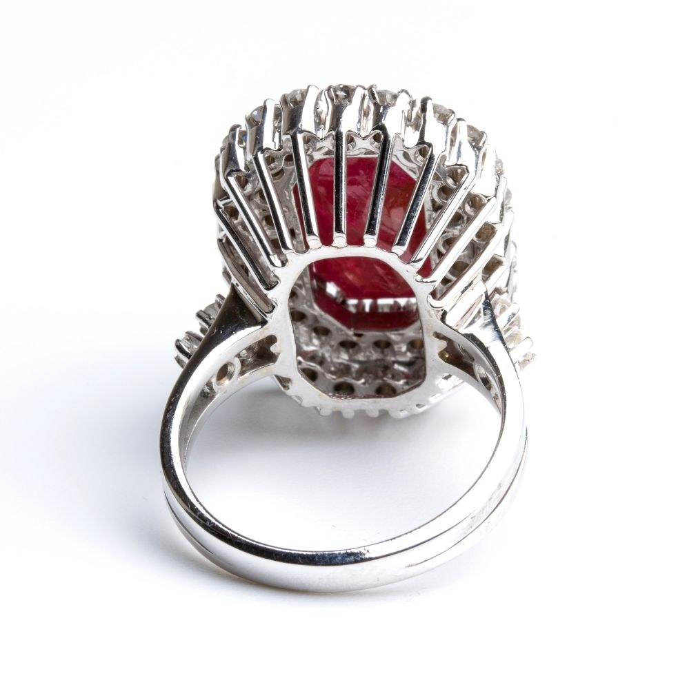 N. 01 ruby, octagonal shaped, step cut, approx. 8.90 ct. Geographic origin: Myanmar (Burma). No indication of heating.