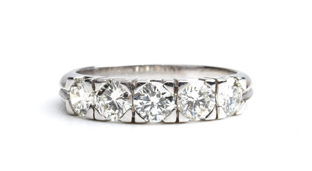 No. 05 round brilliant-cut diamonds, approx. 1.15 ct; F-G; VVS-VS.