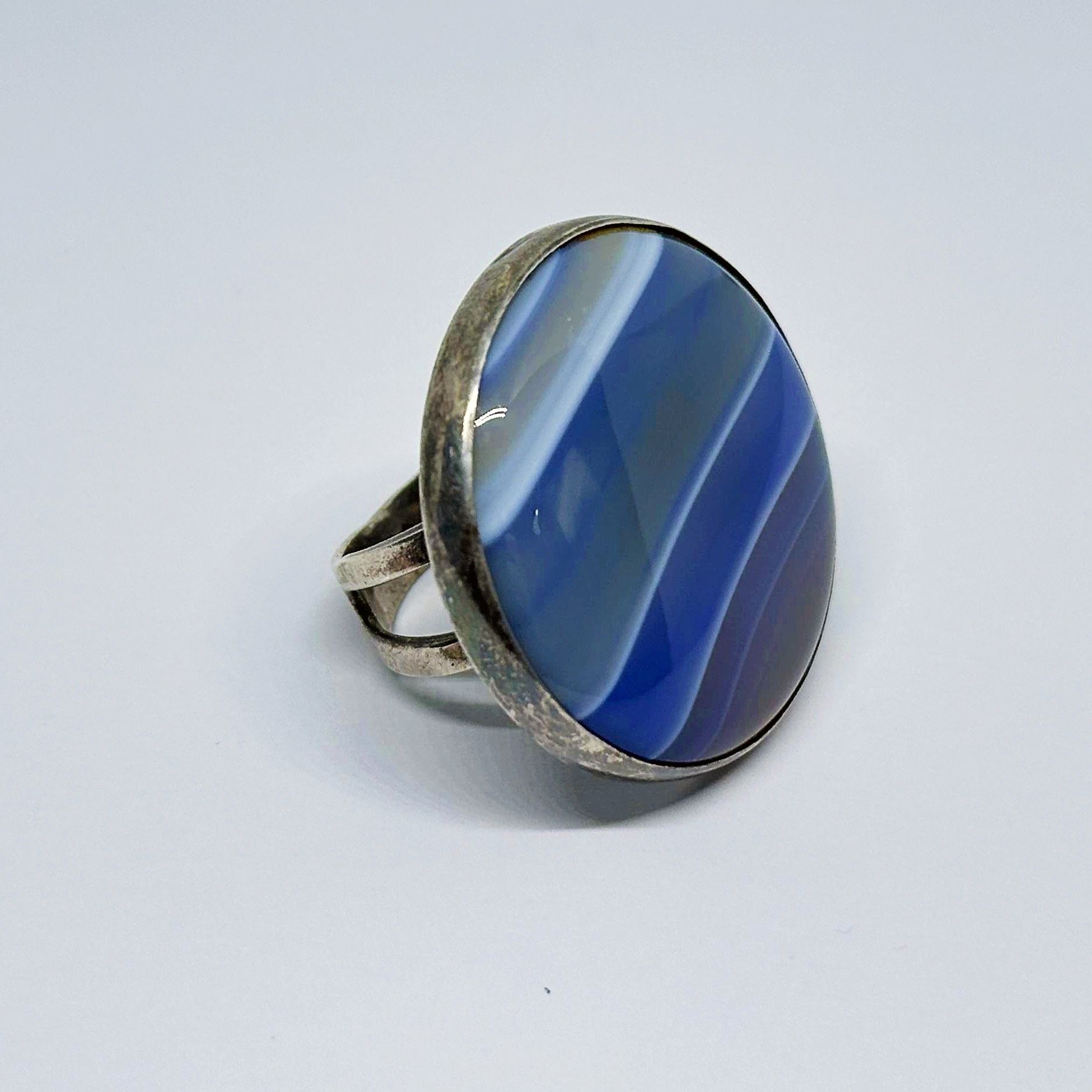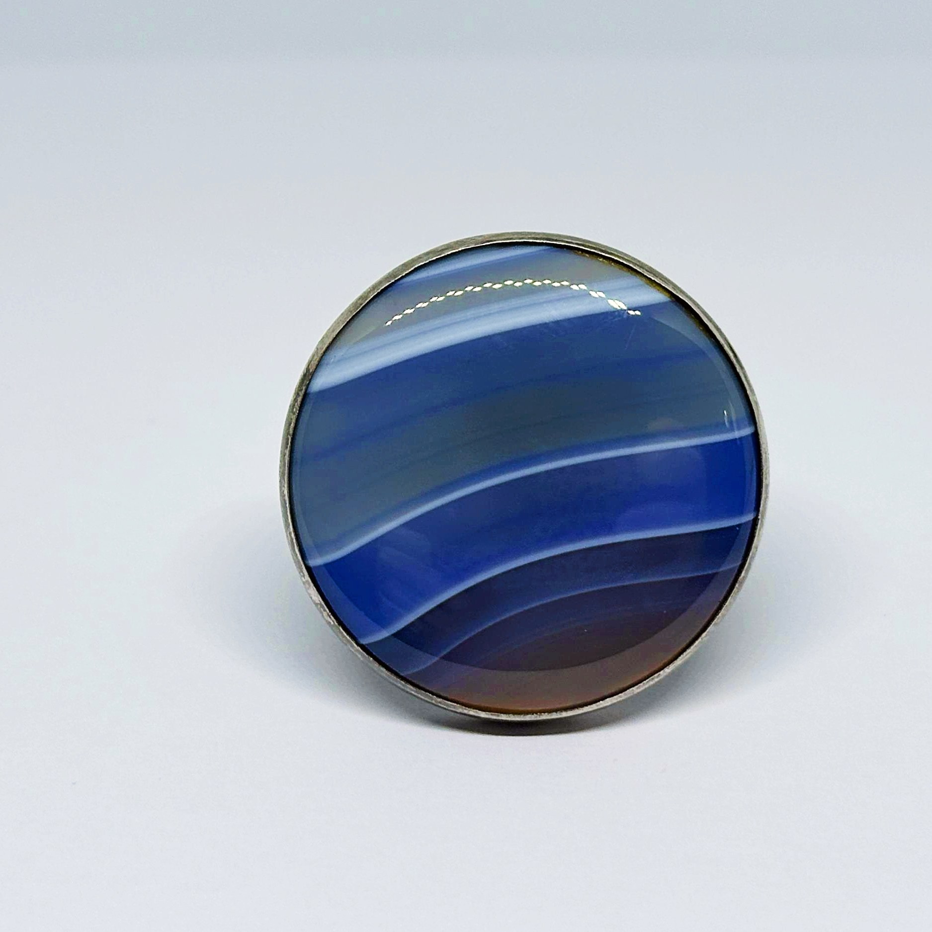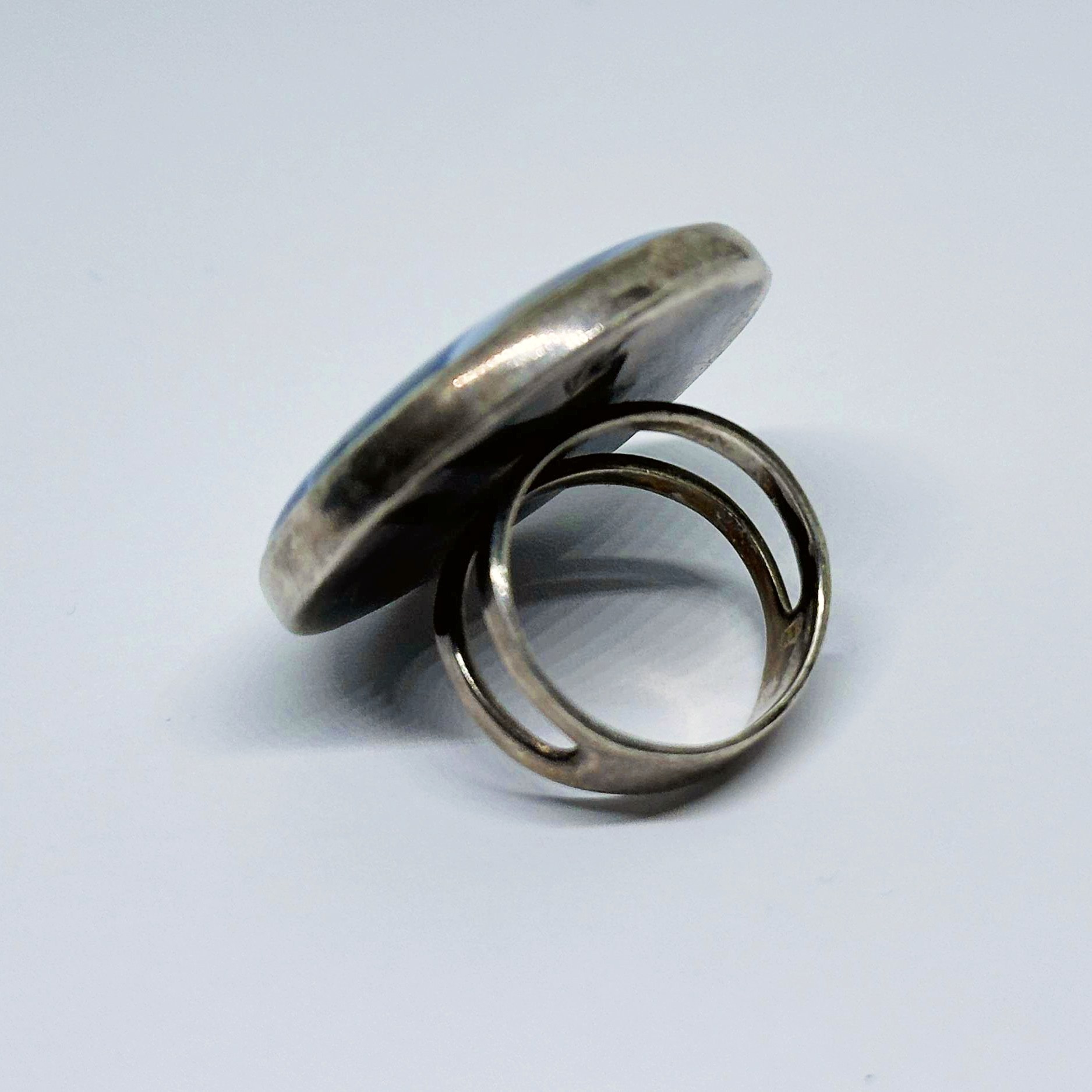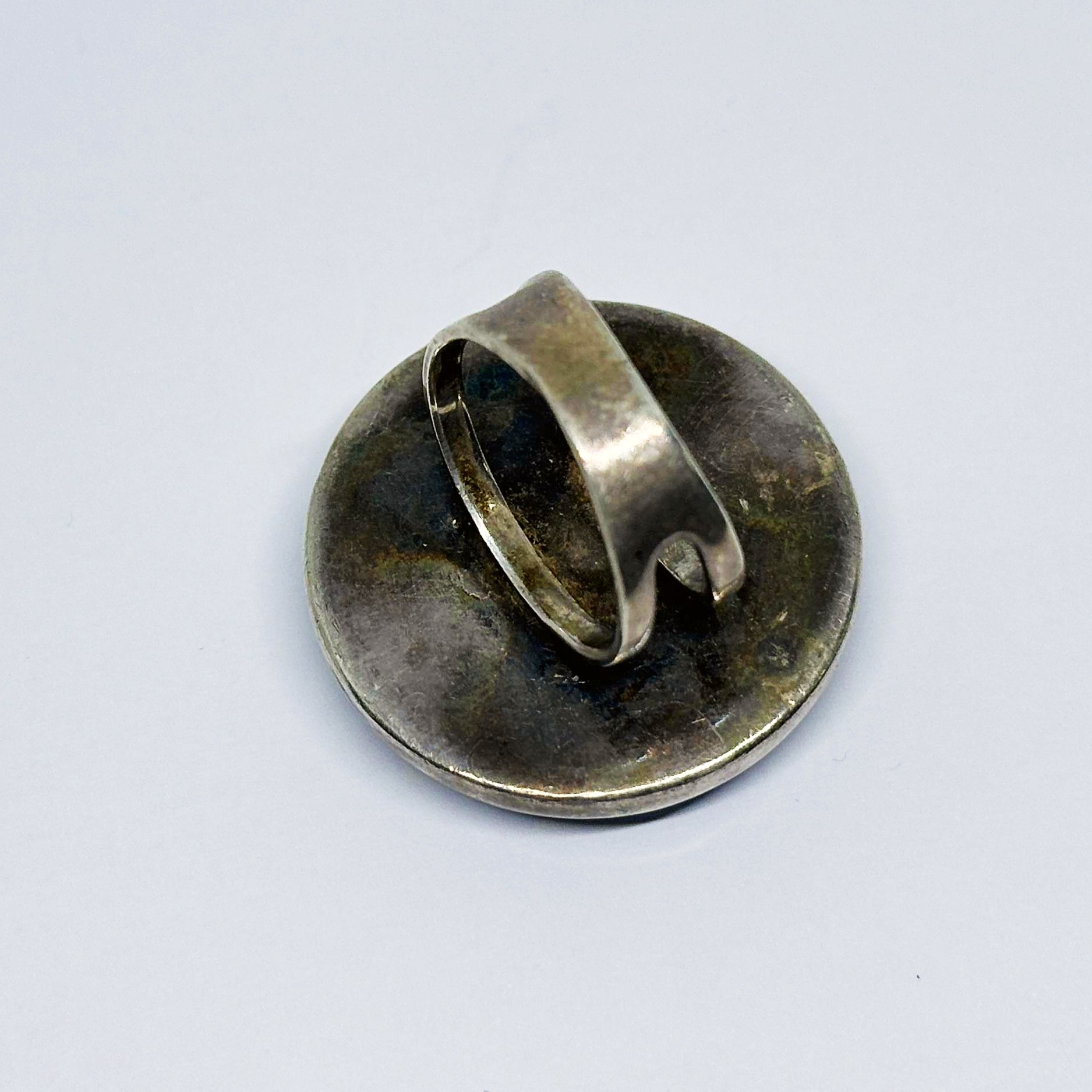 Srebro 925, masa wyrobu 13.11 gram, rozmiar 12-13, kamień o średnicy 30 mm. Stan bardzo dobry, widoczny na zdjęciach
