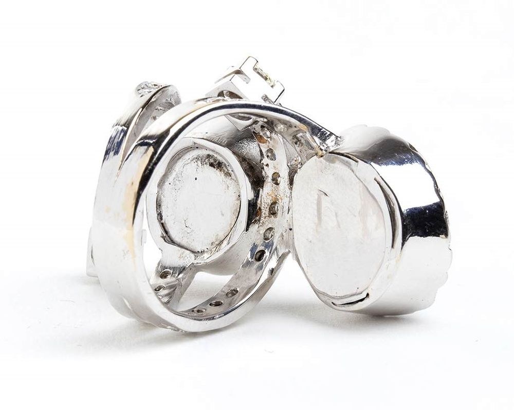 18k white gold, set with sapphire and aquamarine flanked by round brilliant-cut diamonds approx. 2.30 ct, E-F, IF-VVS.