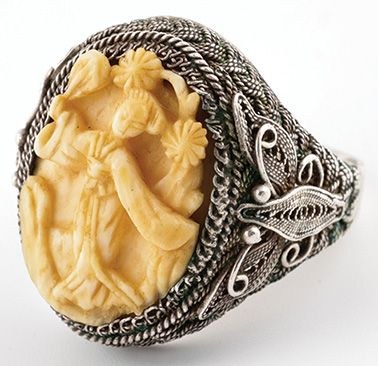 Srebro, próba 2, filigran, kość, waga 7,6 g, rozmiar 18 mm