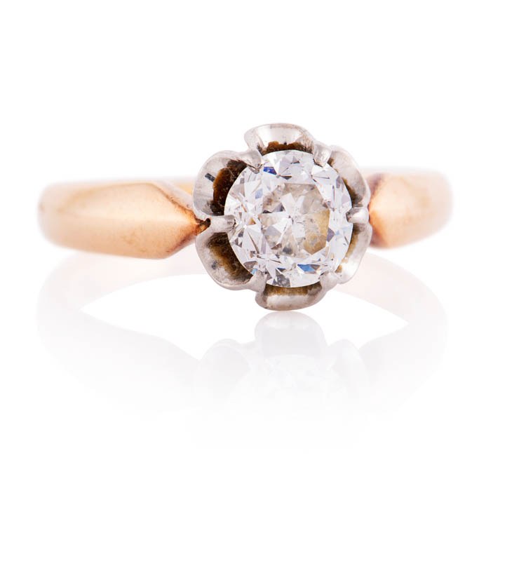 złoto dwubarwne pr. ~ 0,585, 1 szt. diament ~ 1,08 ct I/P1, masa: 4,34 g; rozmiar: 16,5