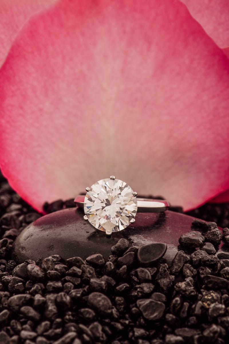 białe złoto pr. ~ 0,750, 1 szt. brylant ~ 5,01 ct F/VS2, masa: 5,73 g; rozmiar: 13,5; dołączono certyfikat IGI