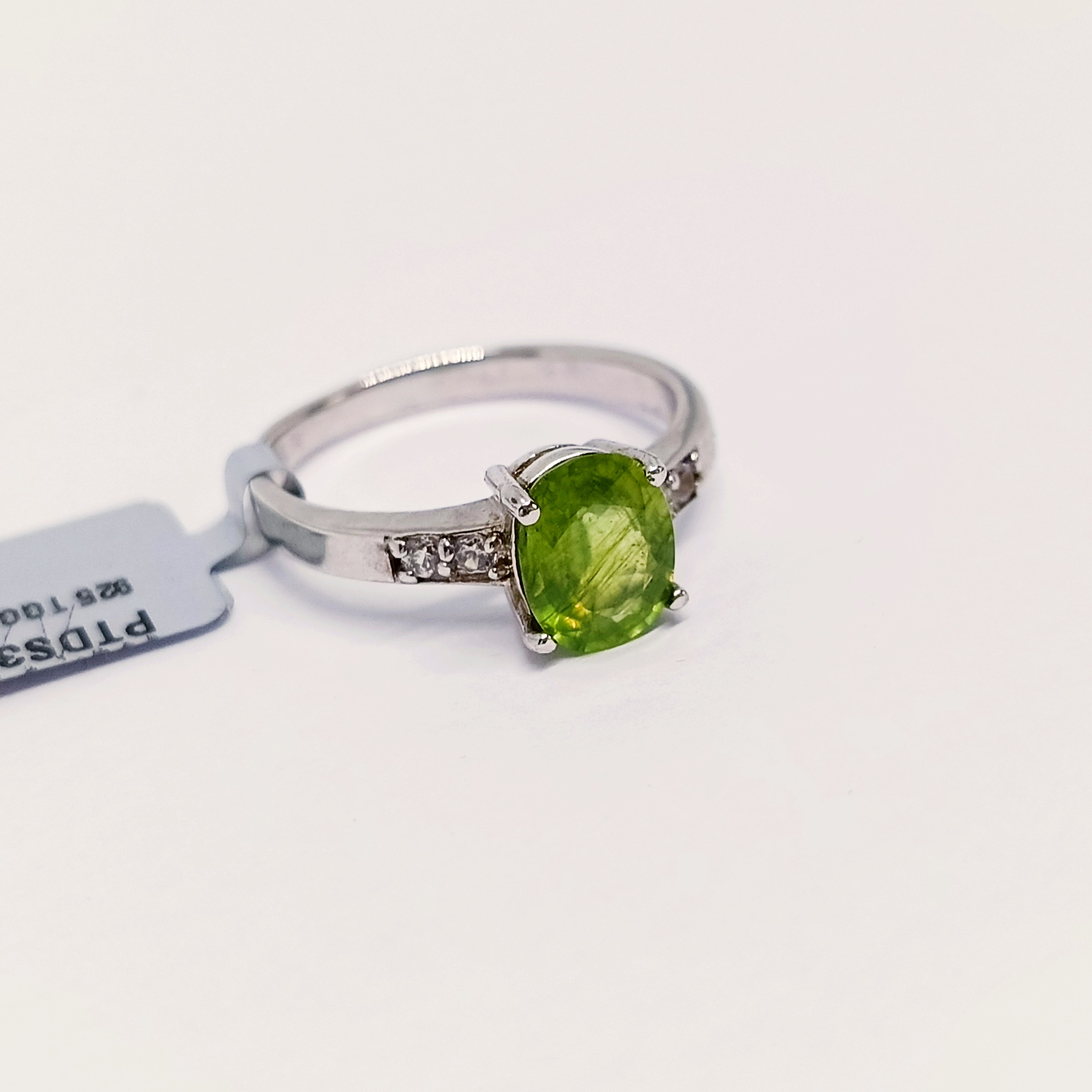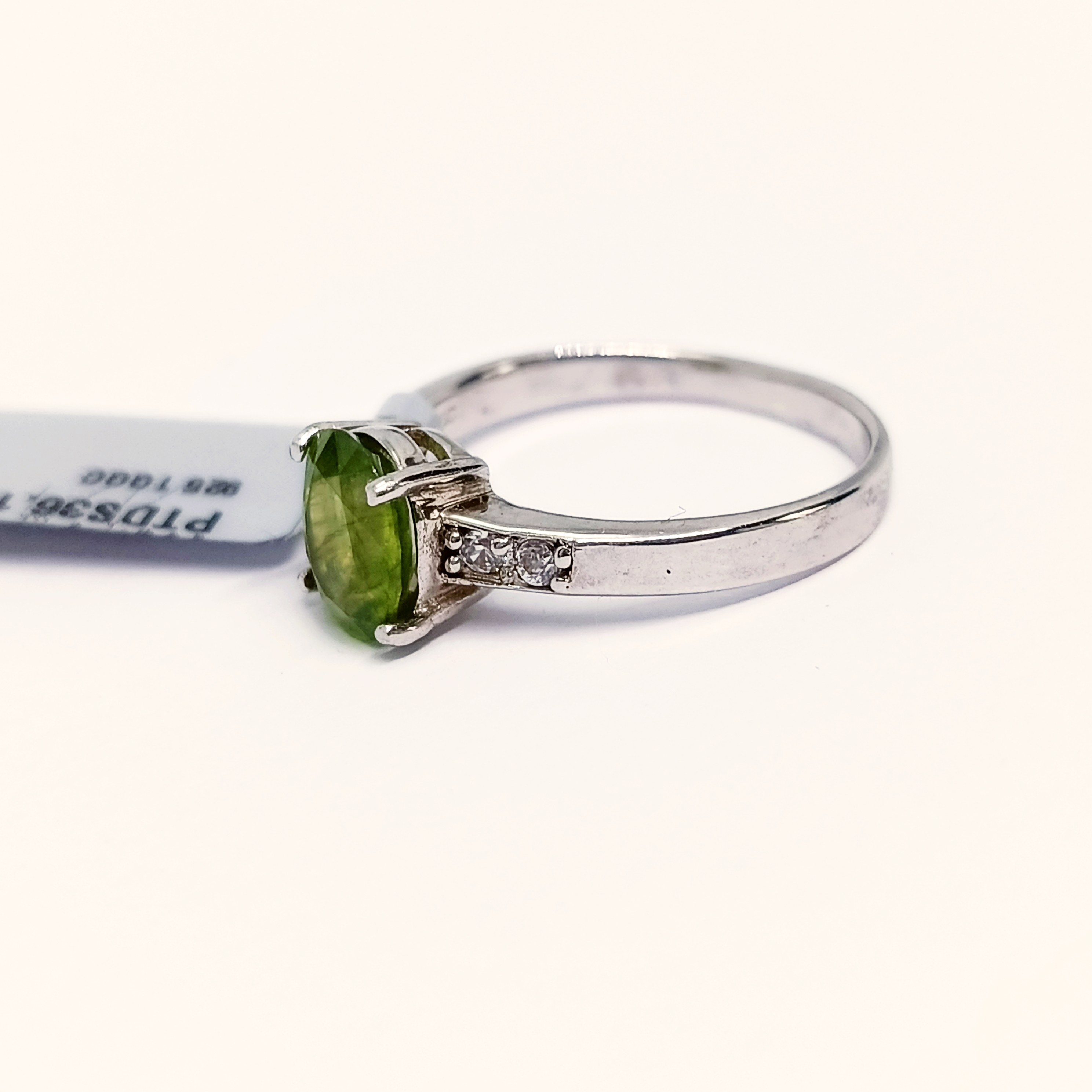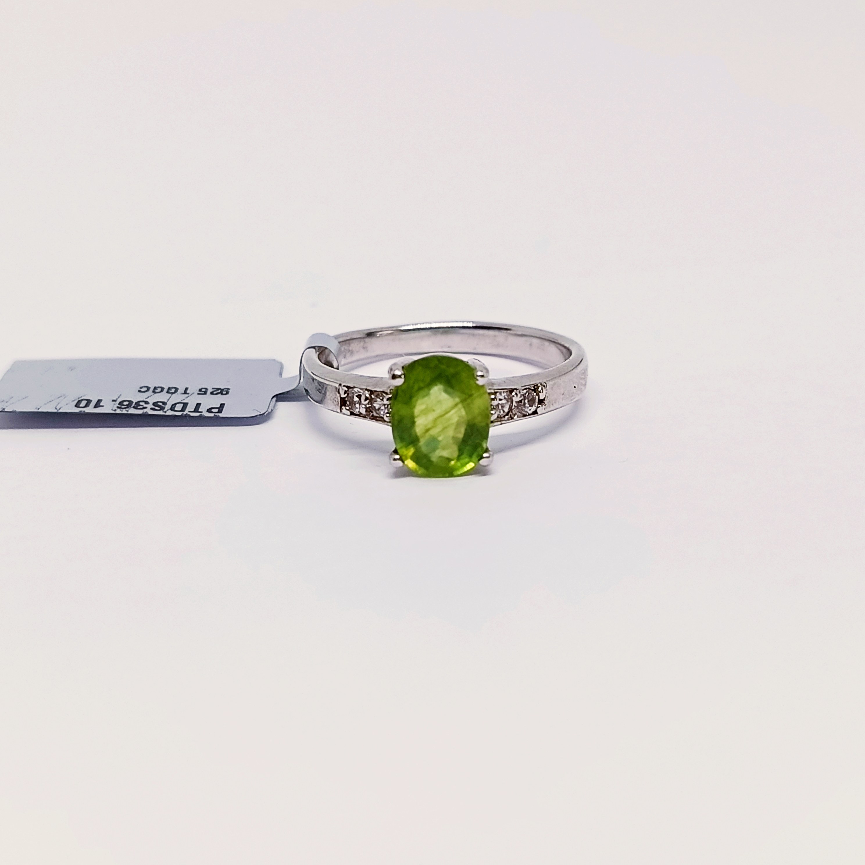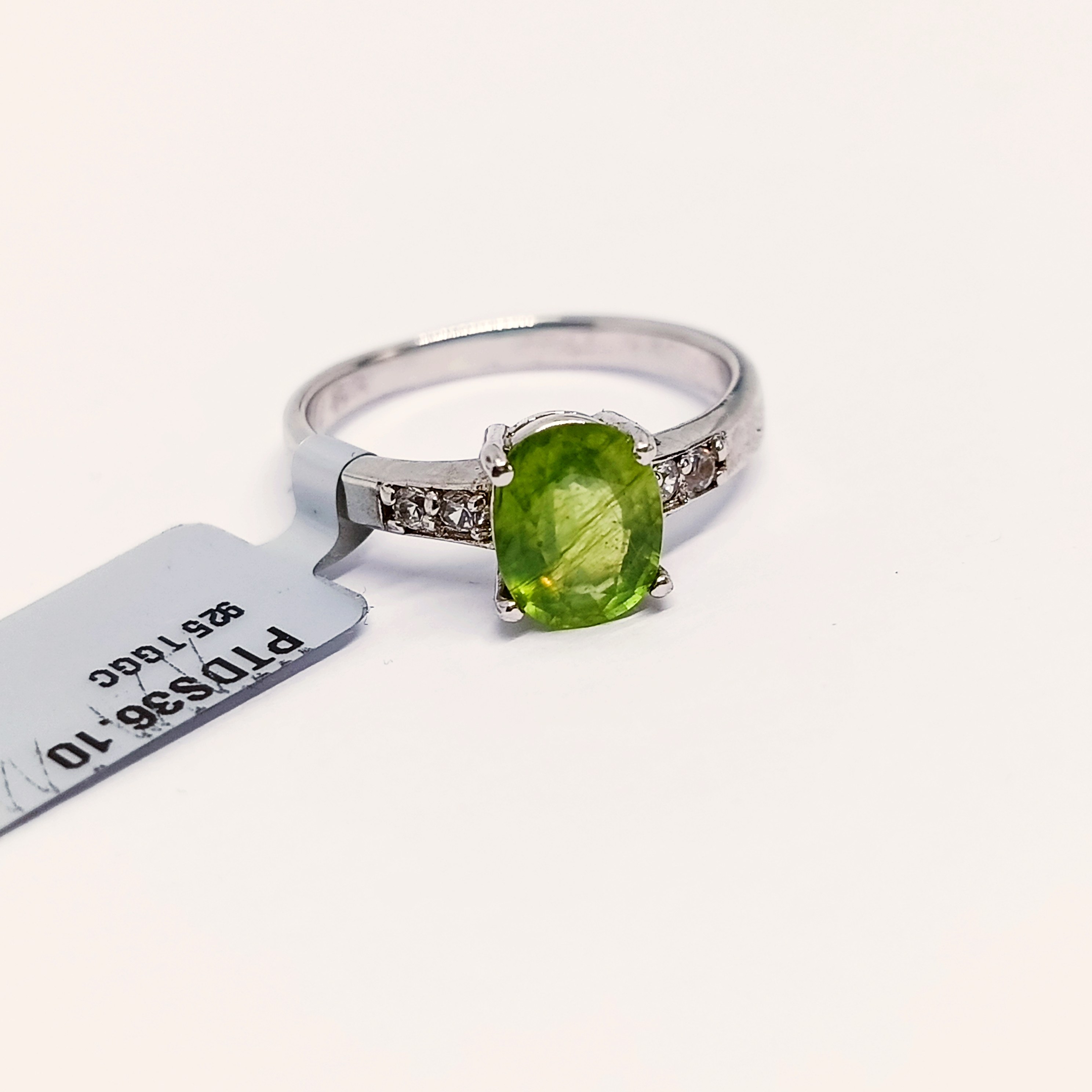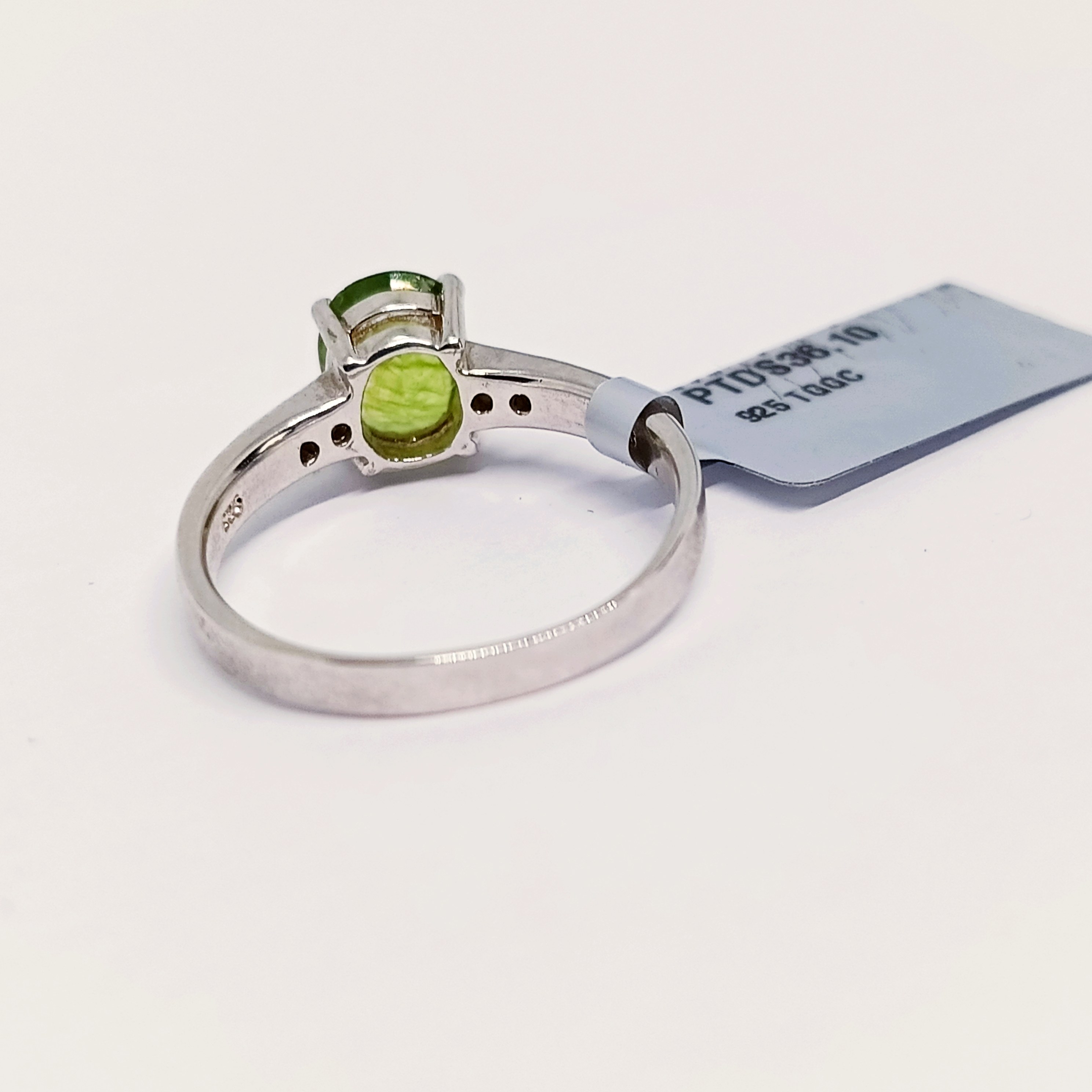 Pierścionek z Demantoidem i Białymi Topazami, Srebro 925