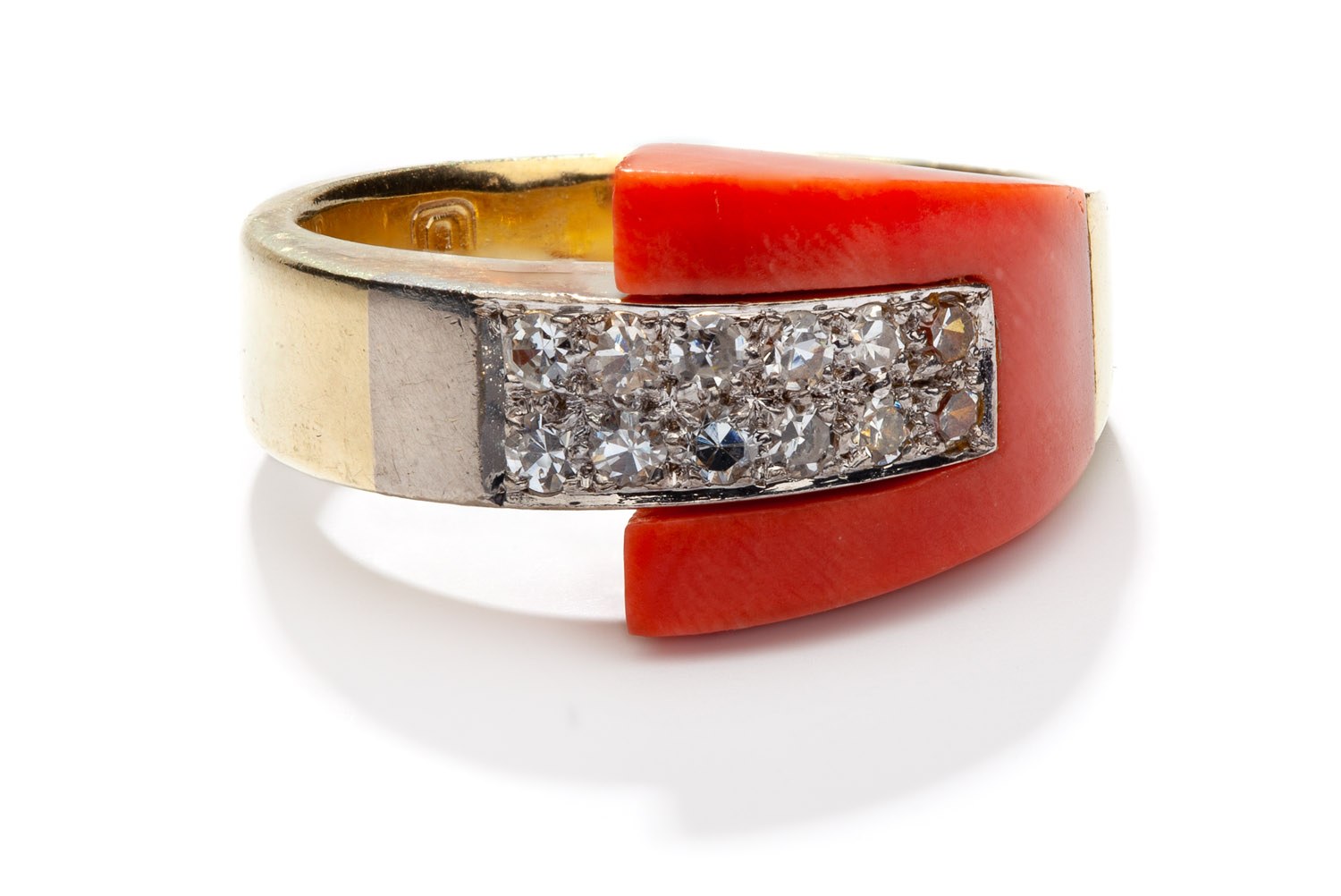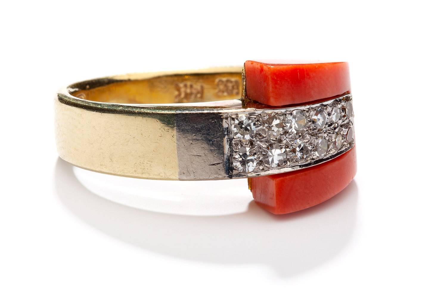 złoto pr. 0,585, 1 koral, 12 diamentów ł. ~ 0,26 ct ~ H/VS w szlifie 8/8, masa: 6,53 g, rozmiar: 14*