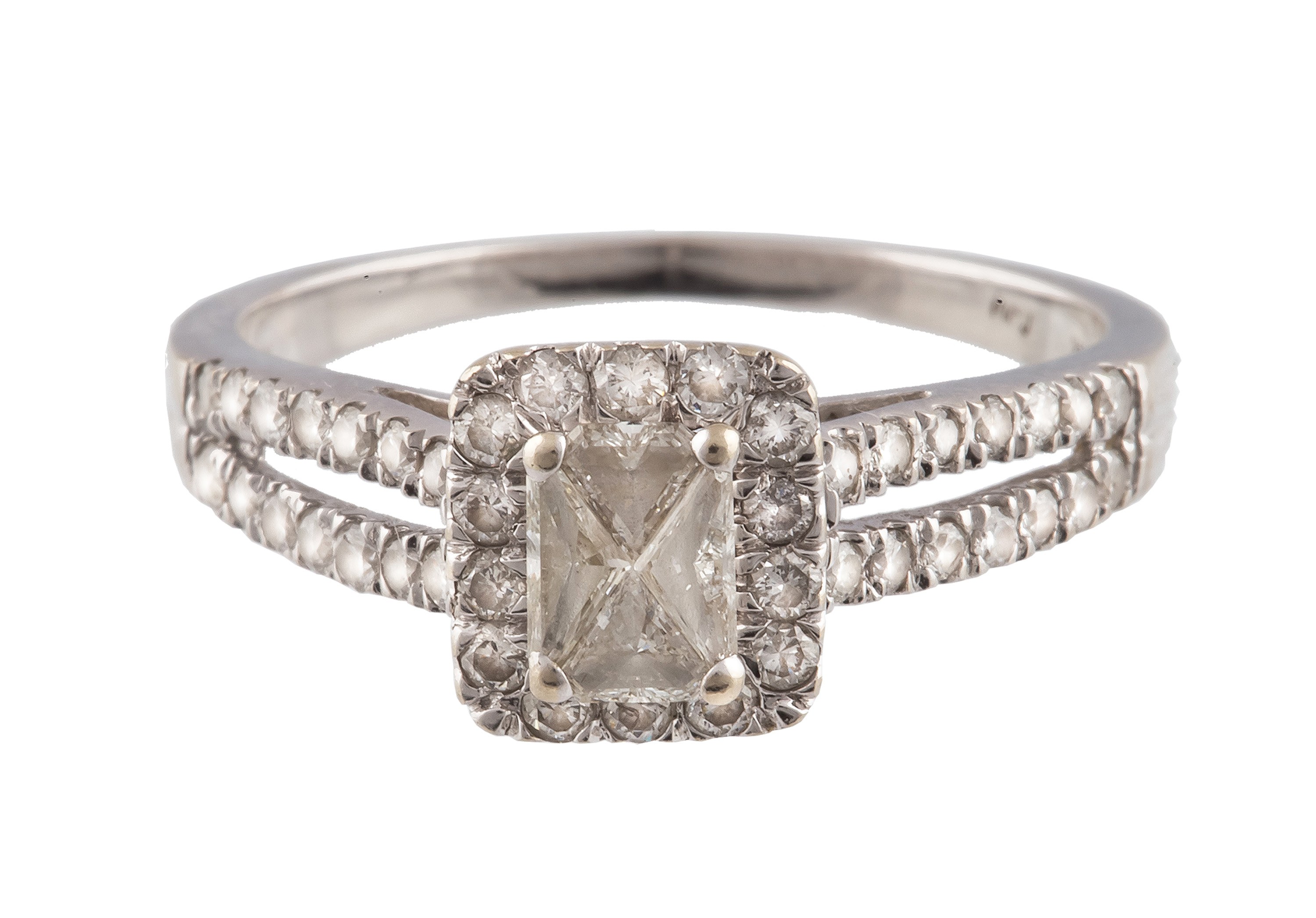 4 szt. diamentów łącznie ok. 0,40 ct, 42 szt. brylantów łącznie ok. 0,72 ct, SI-P3/G-J