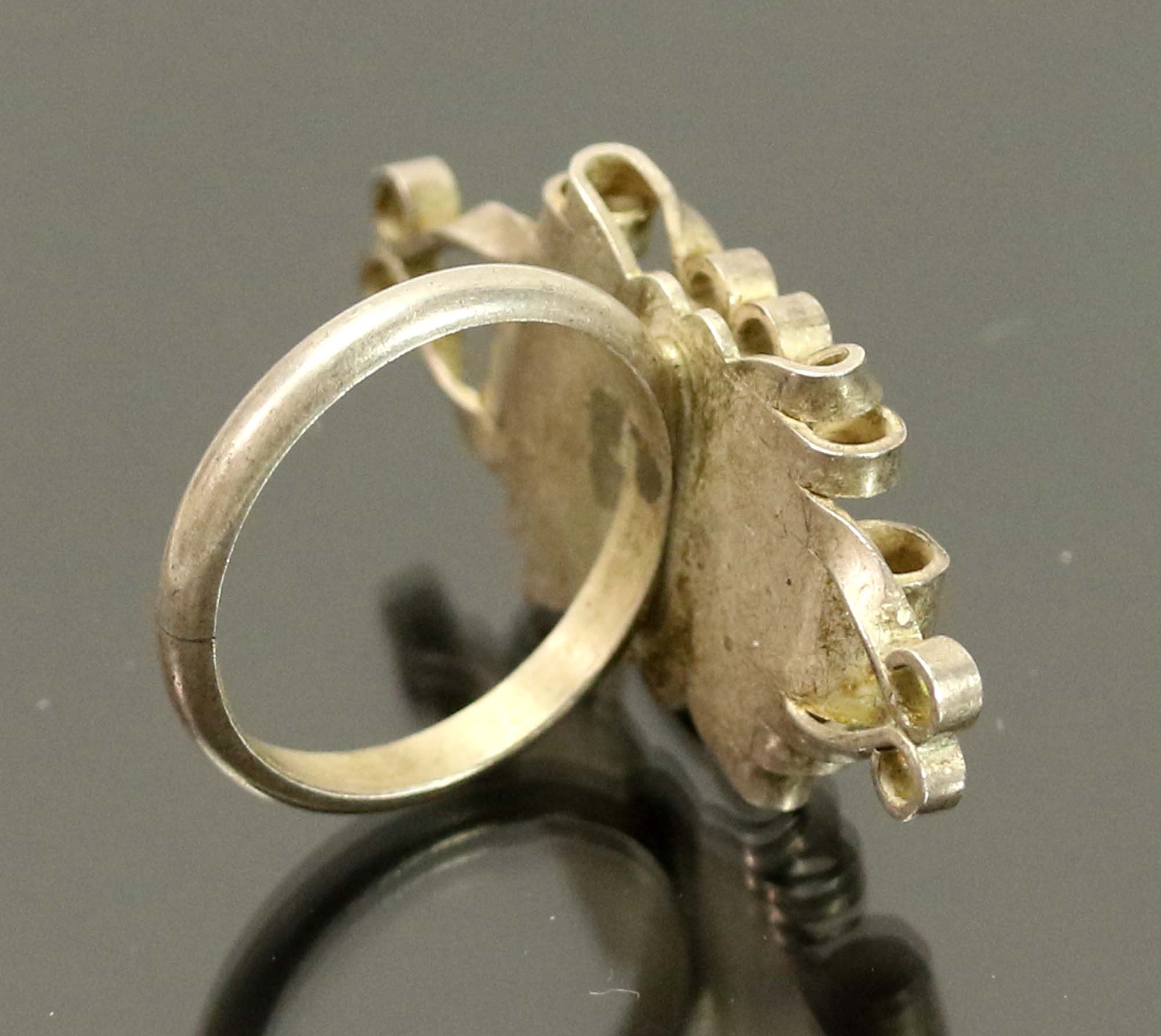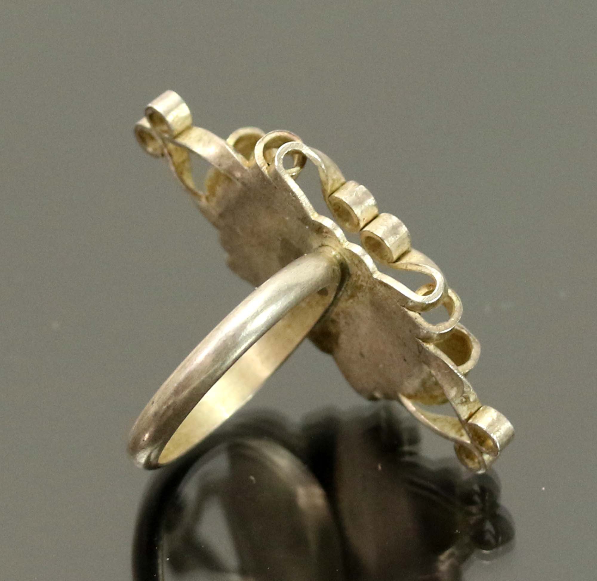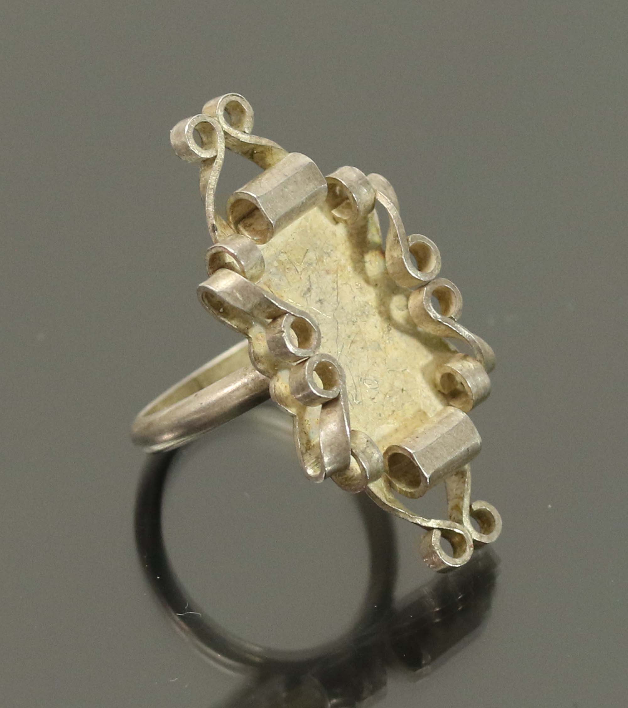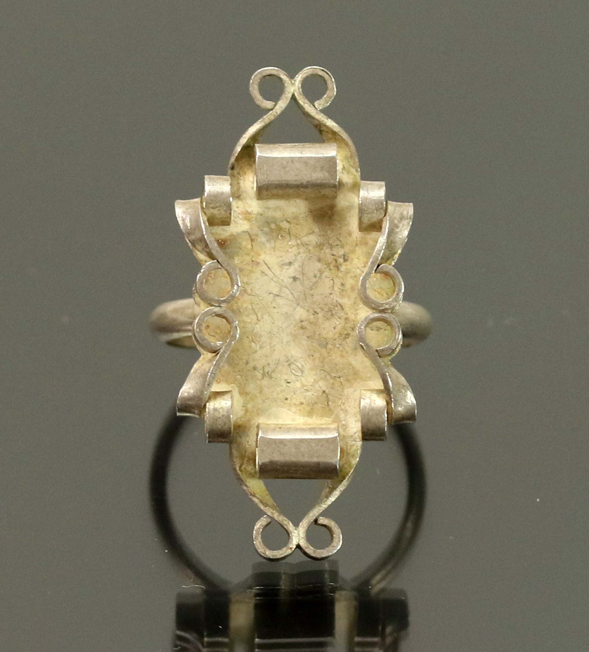 Półprodukt pierścionka. Srebro niecechowane. Wym. koszyczka 34 x 16 mm, średnica pierścionka 16 mm. Waga 5 g.