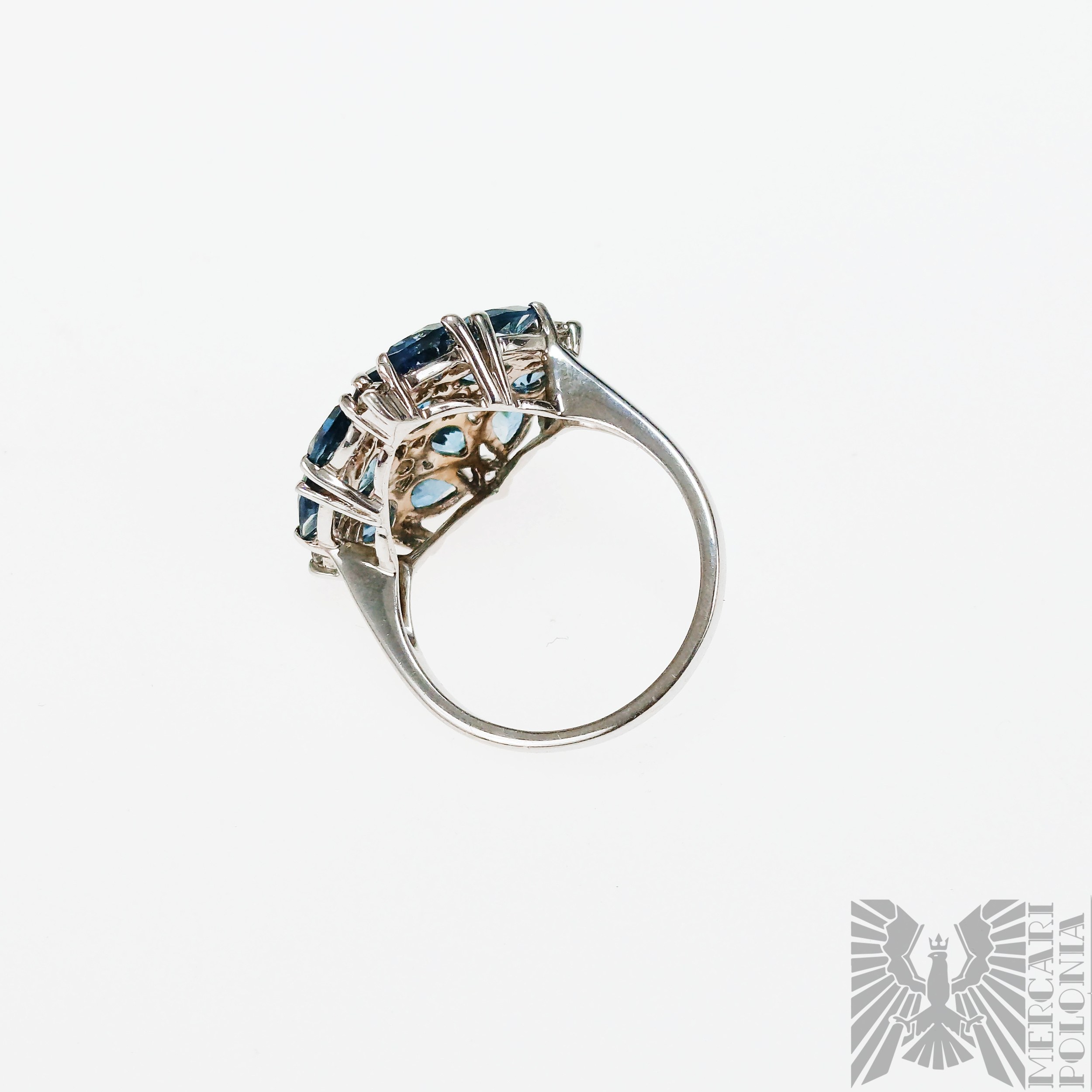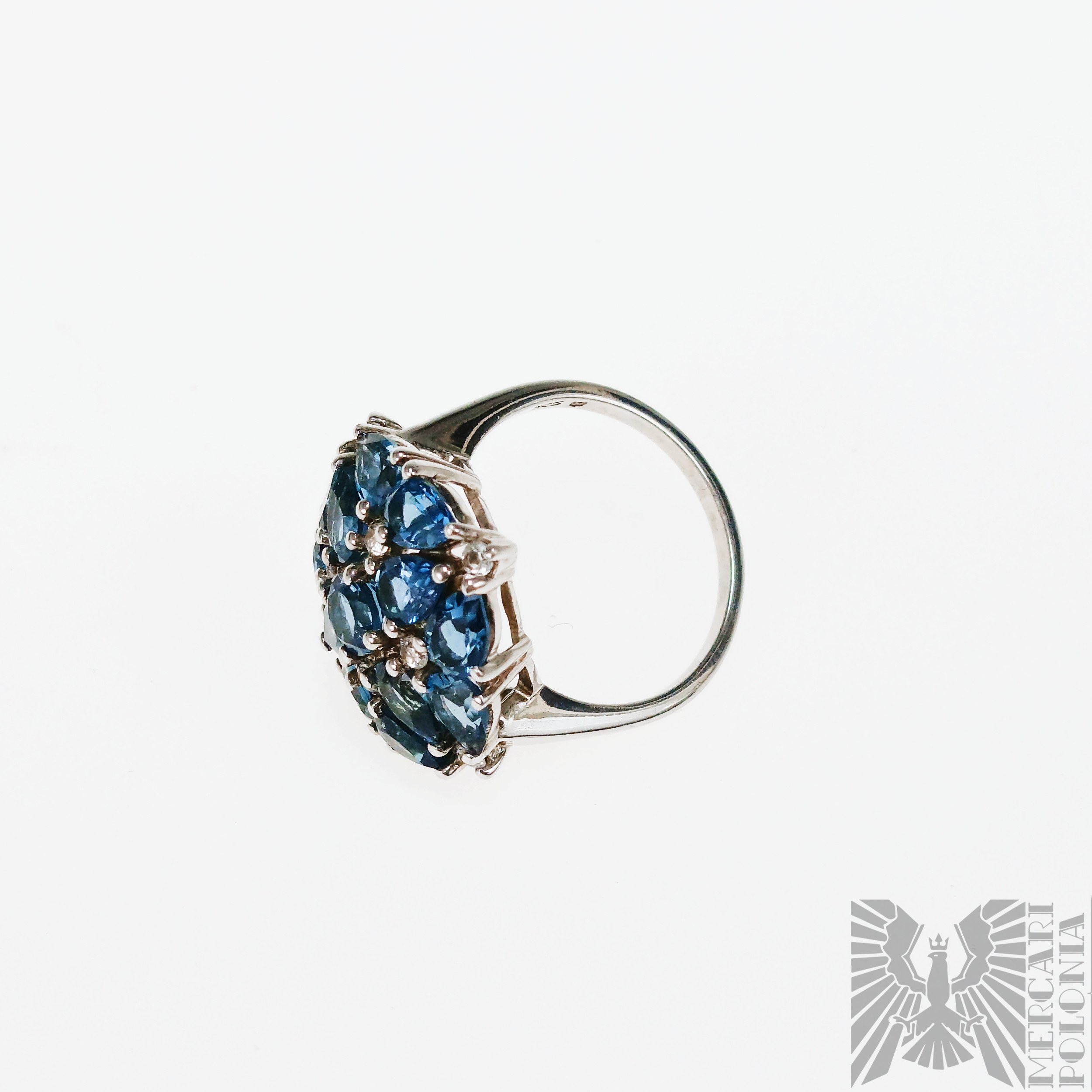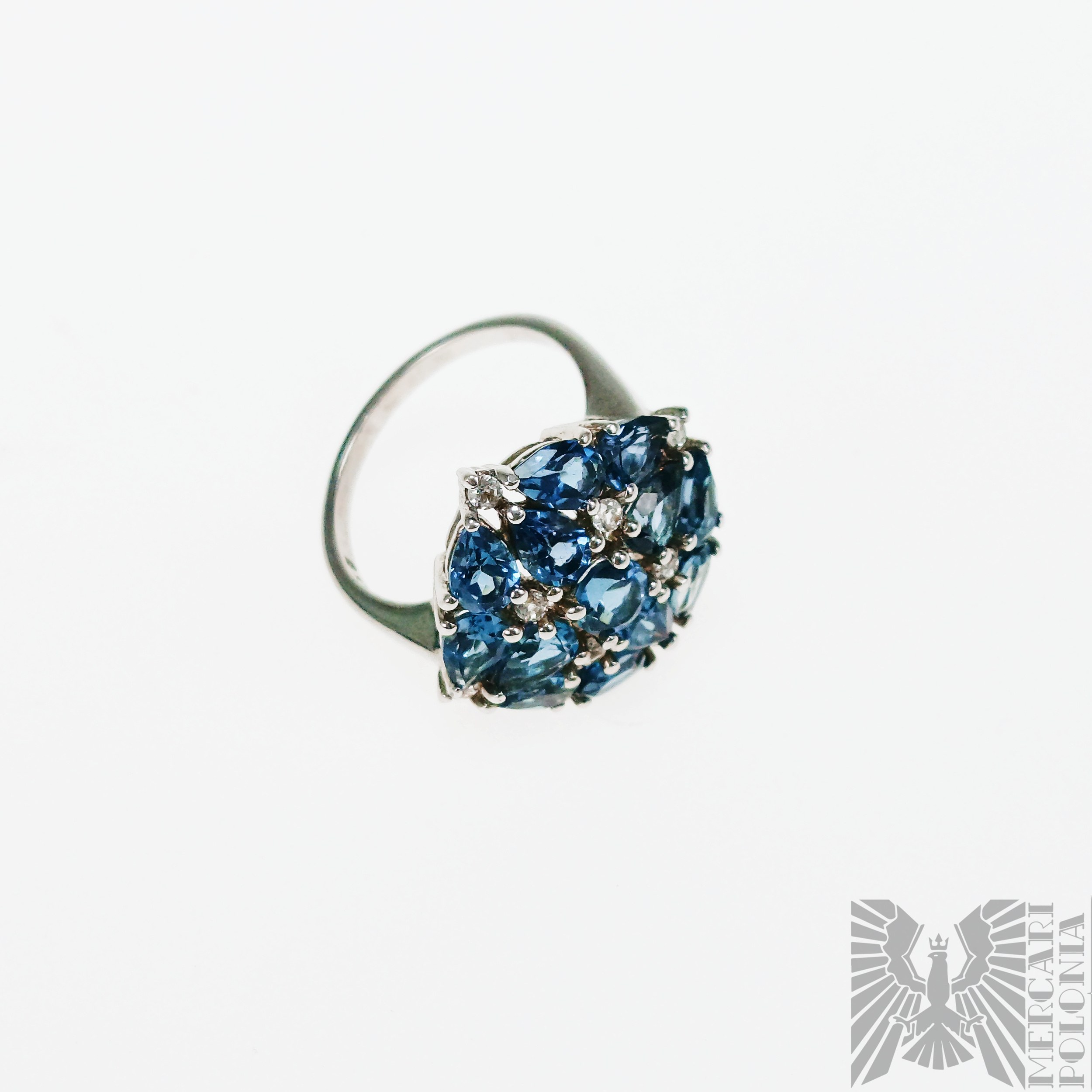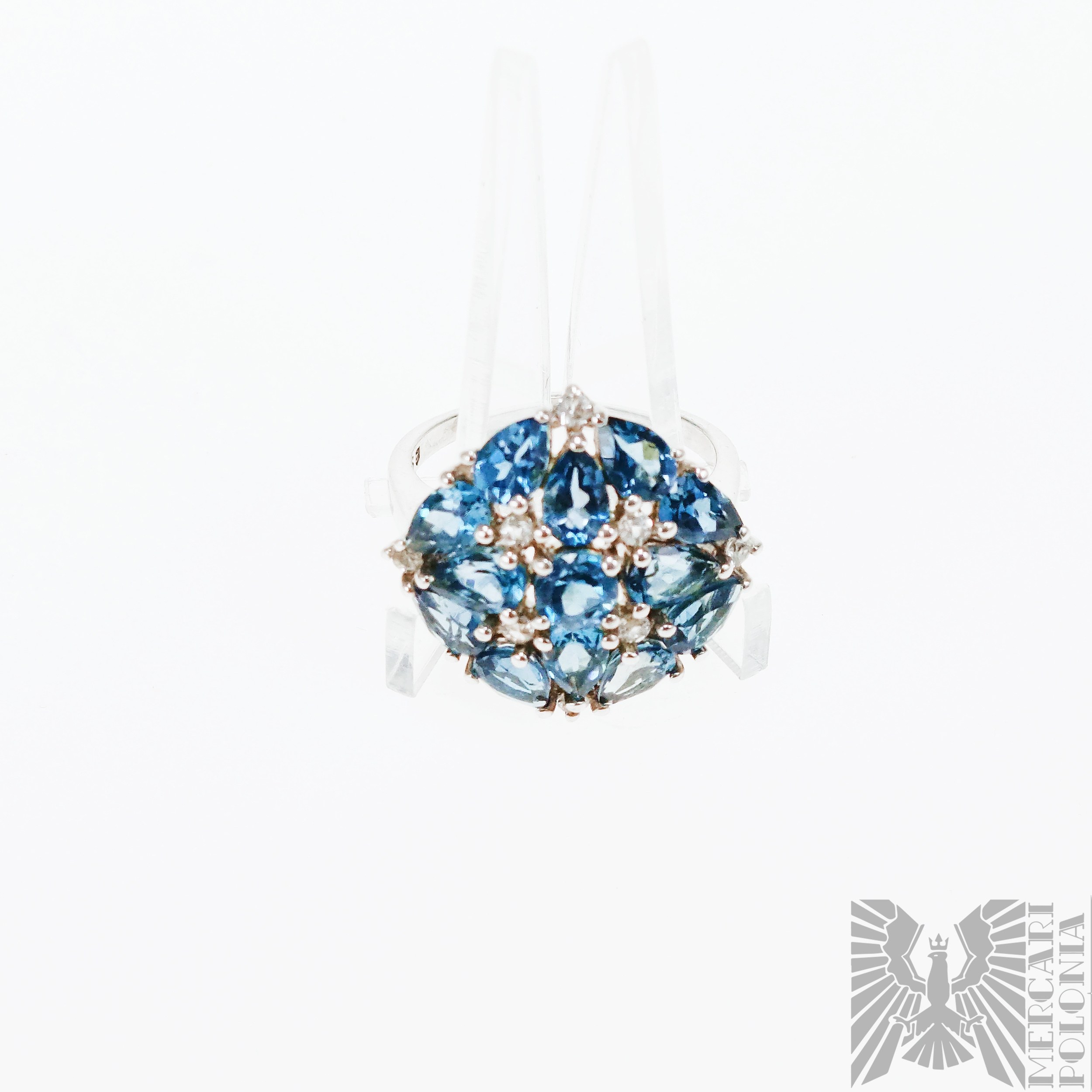 Udekorowany Naturalnymi Topazami London Blue i Białymi Szafirami Pierścionek, Srebro 925, Naturalne Topazy London Blue o masie łącznej około 6.50 Ct oraz Białe Szafiry o masie łącznej około 0.20 Ct, masa wyrobu 6.06 gram, rozmiar 18-19