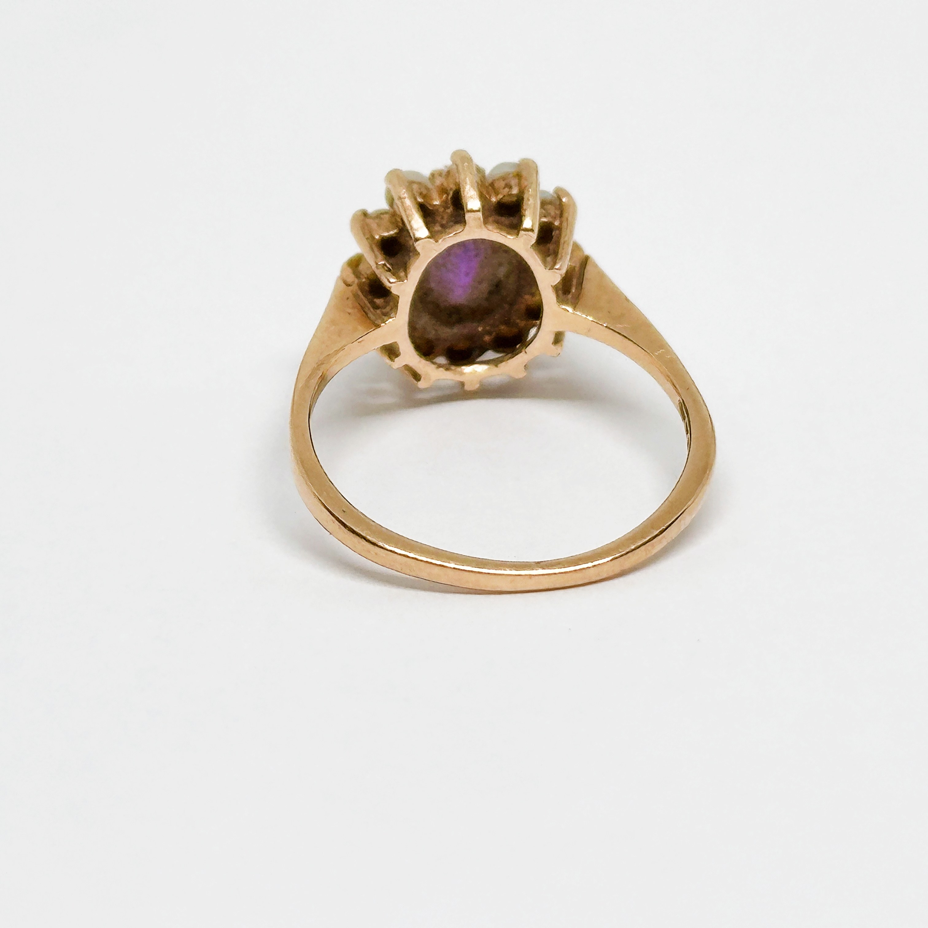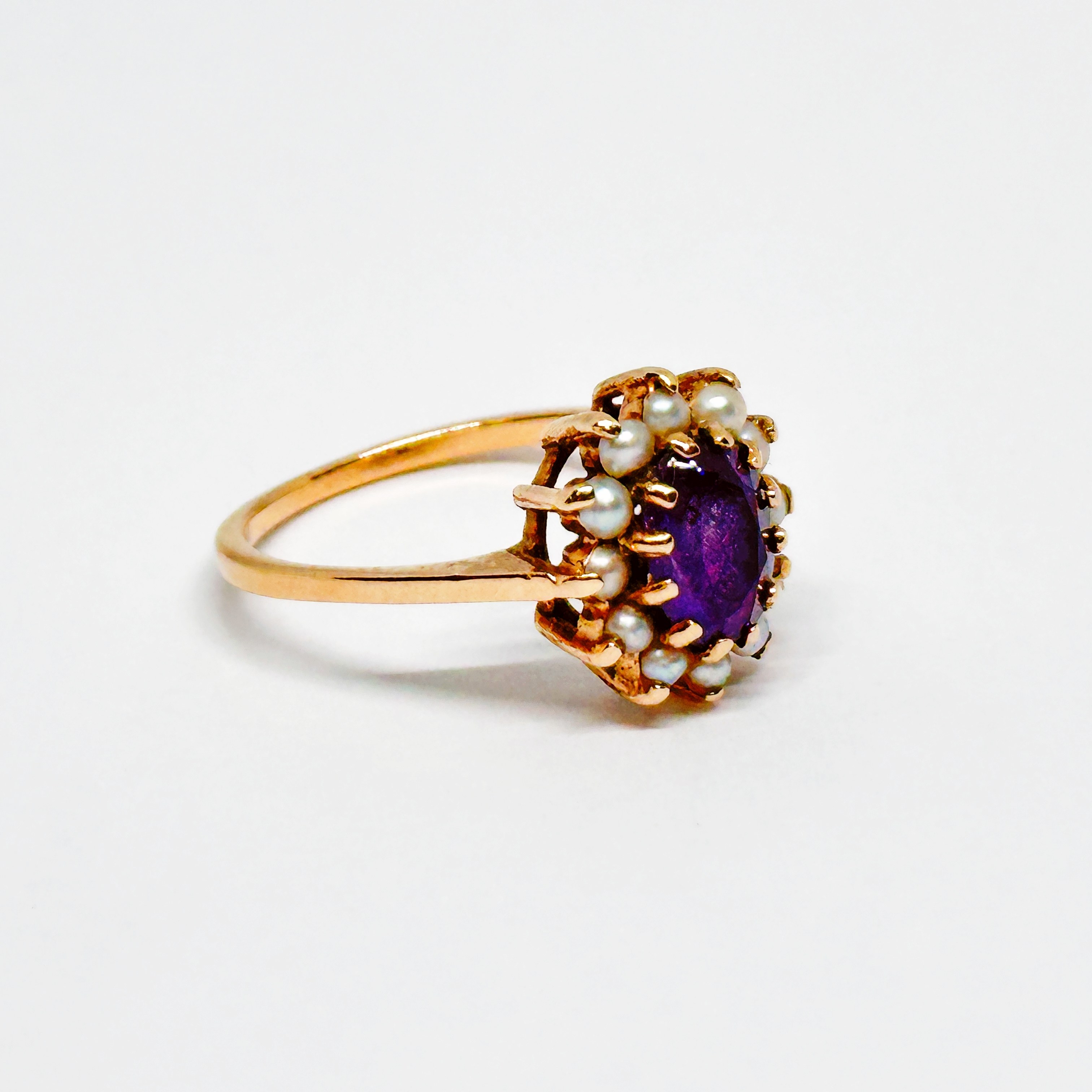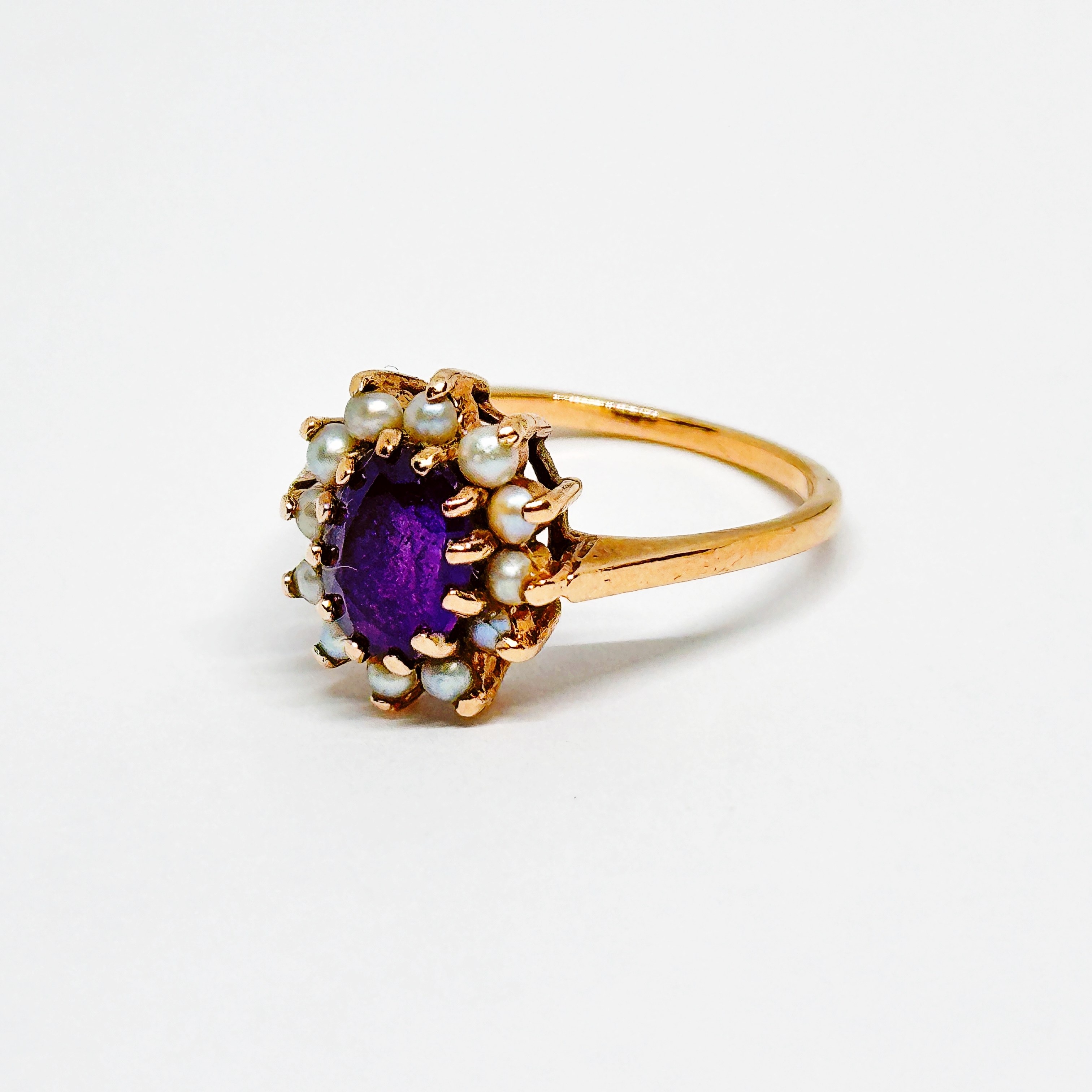 Złoty 375/9K pierścionek z Ametystem i Perłami