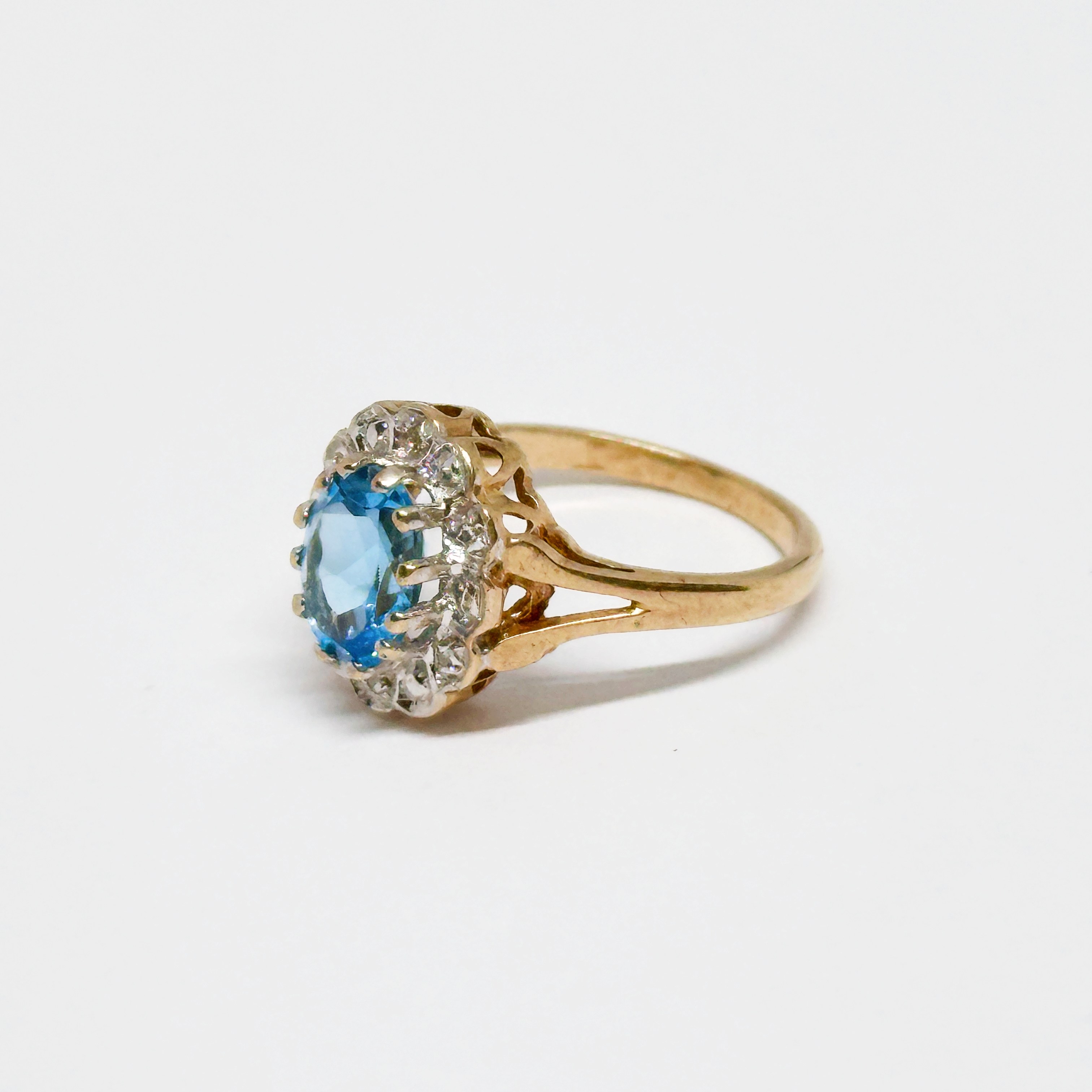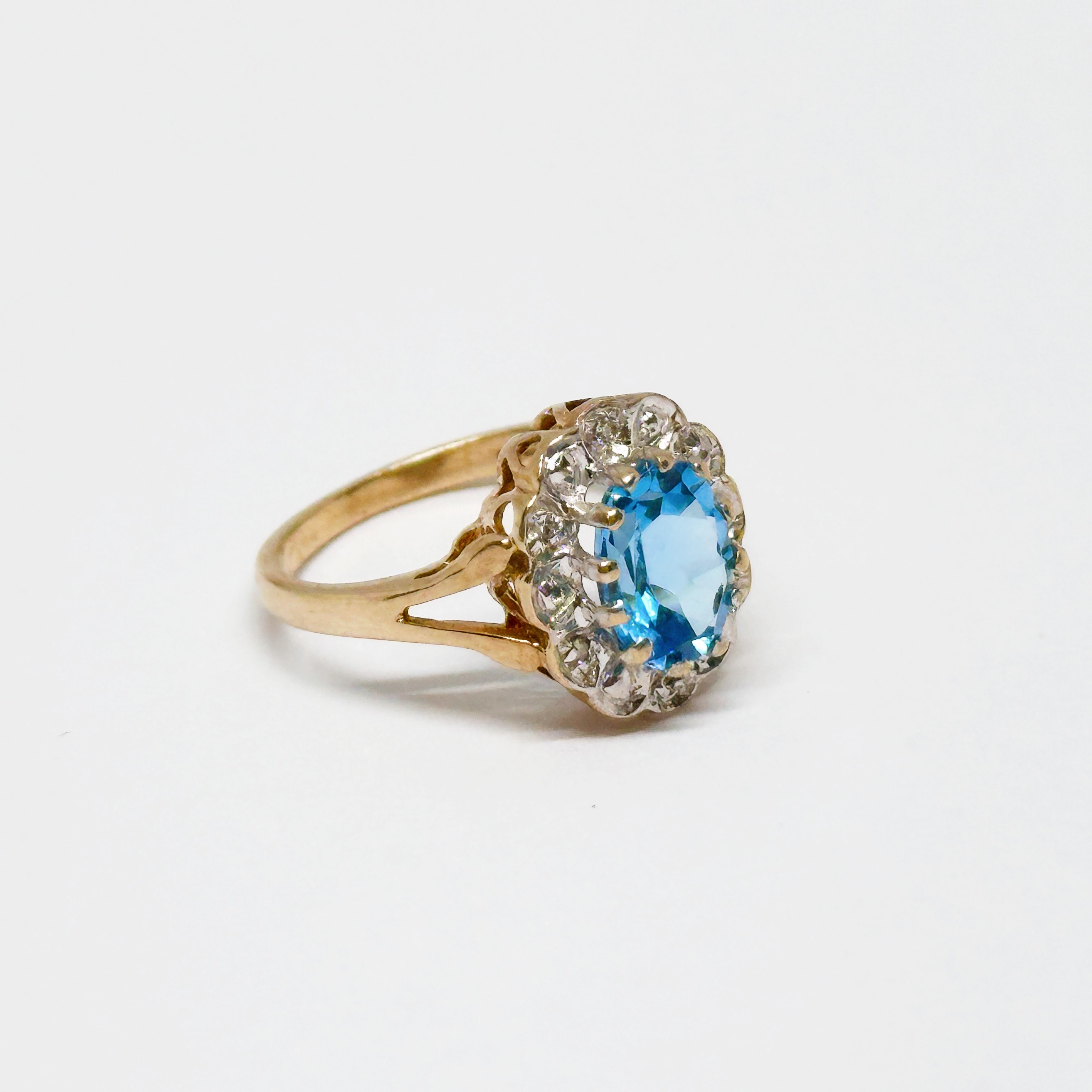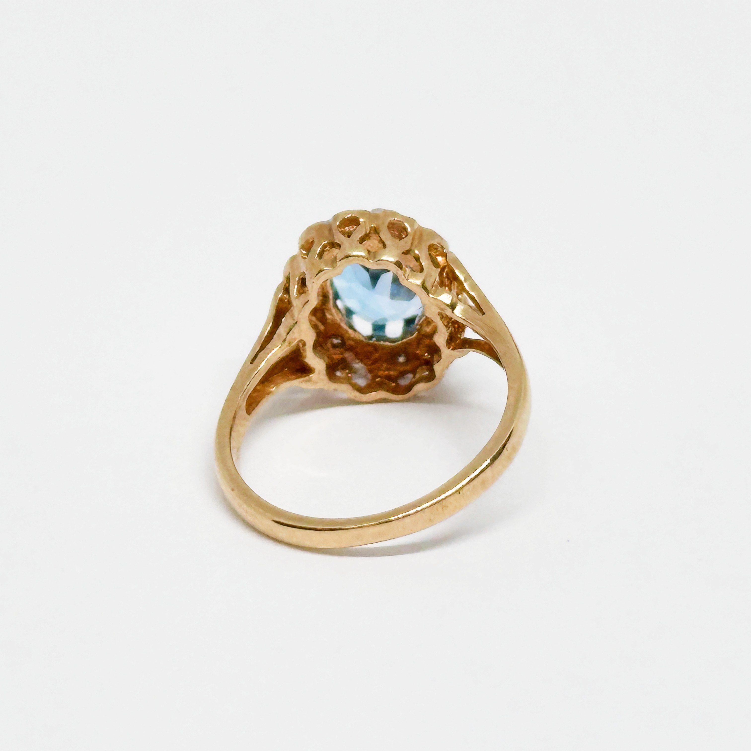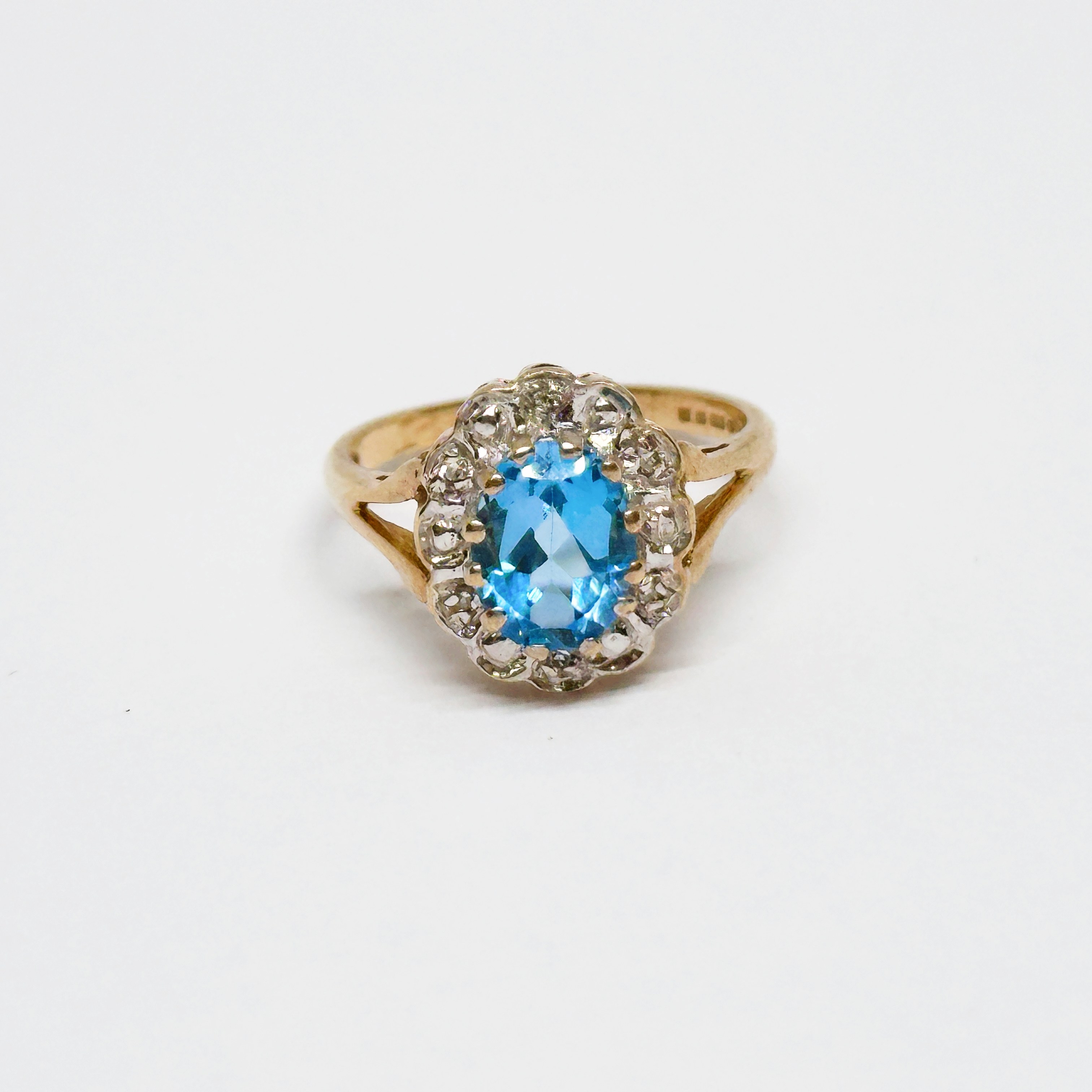 Złoty 375/9K pierścionek z Topazem i Diamentami 0.06 Ct