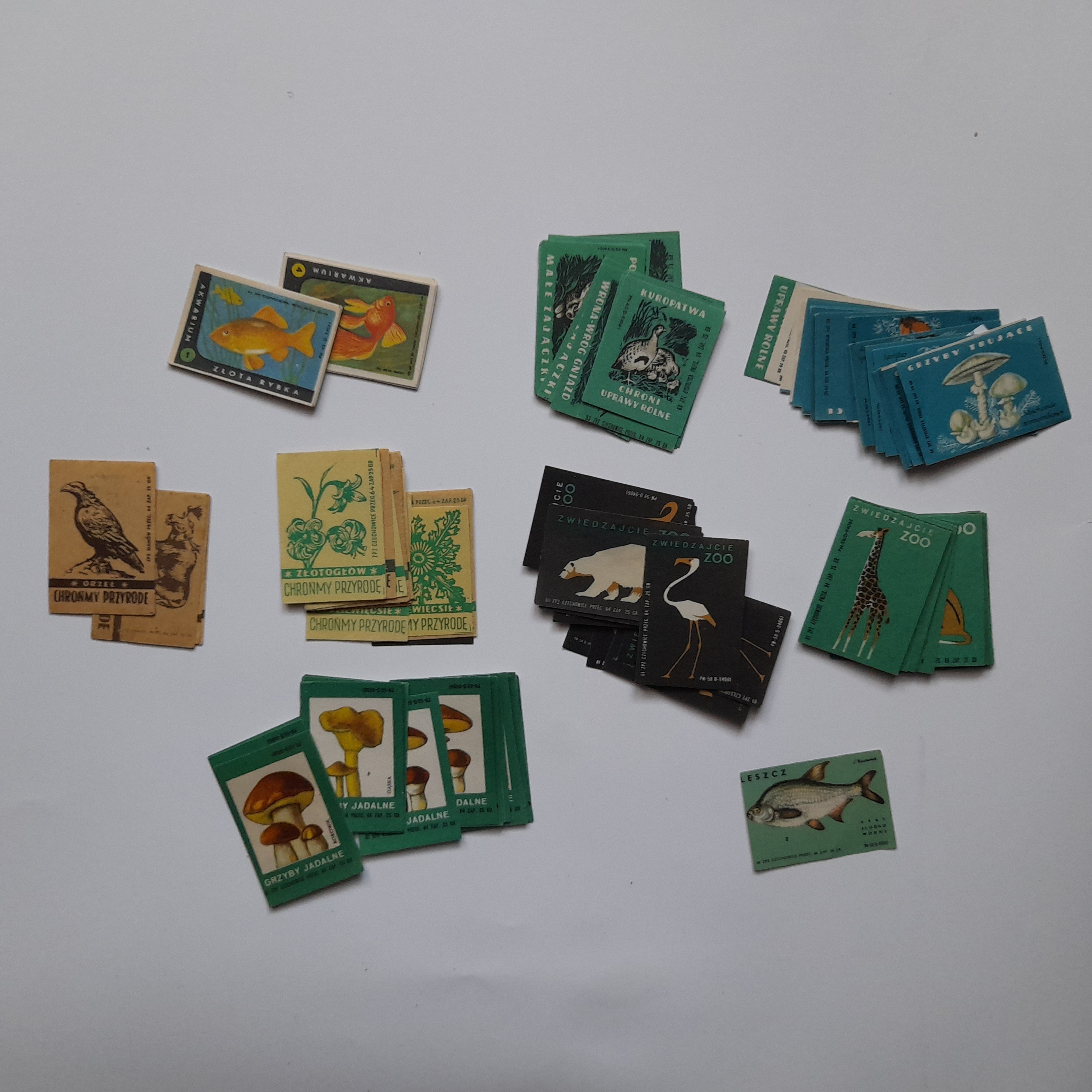 127 polskich etykietek zapałczanych o tematyce przyrodniczej wydane w latach 1960-65. 9. serii. Stan bdb.
