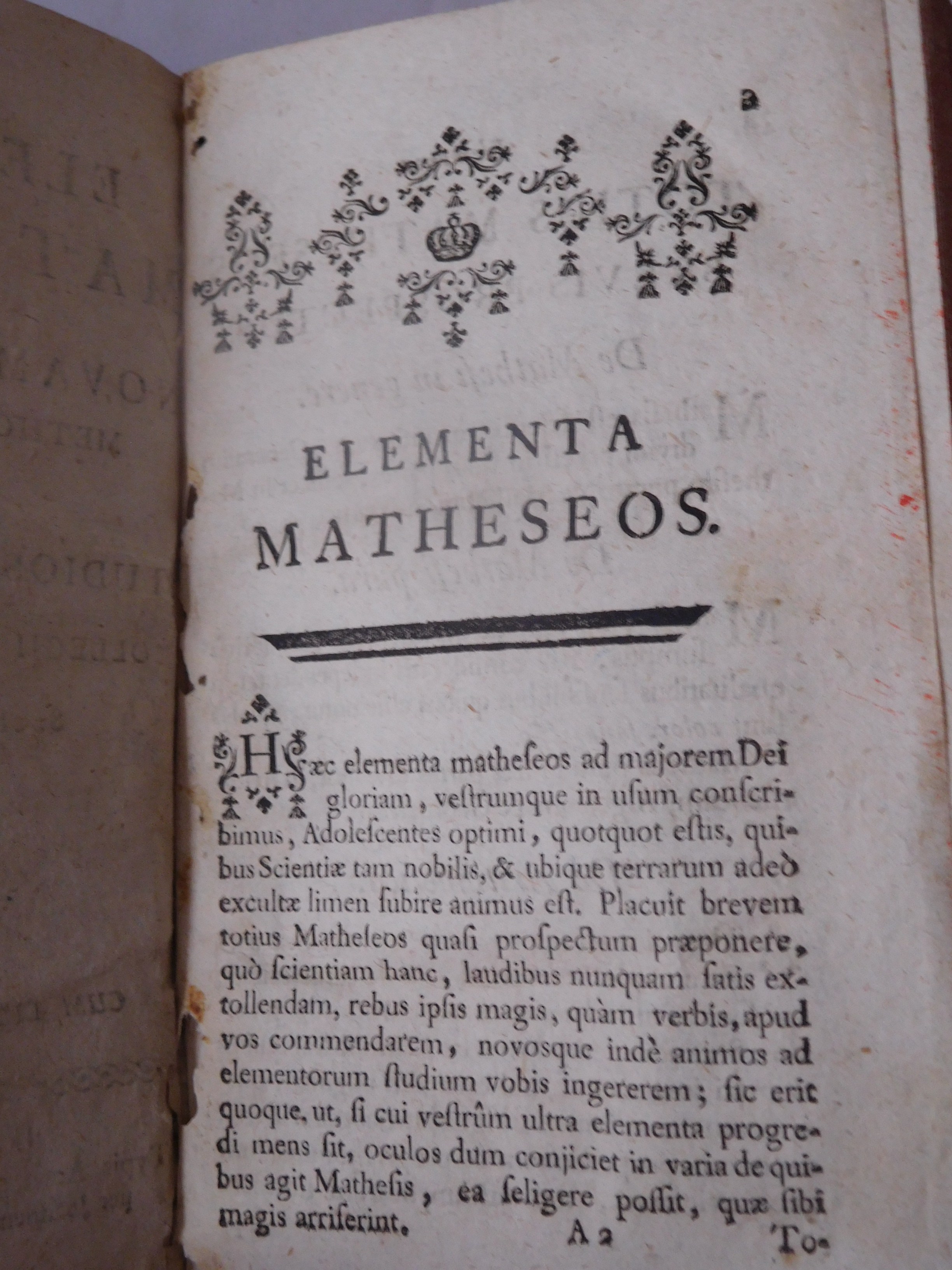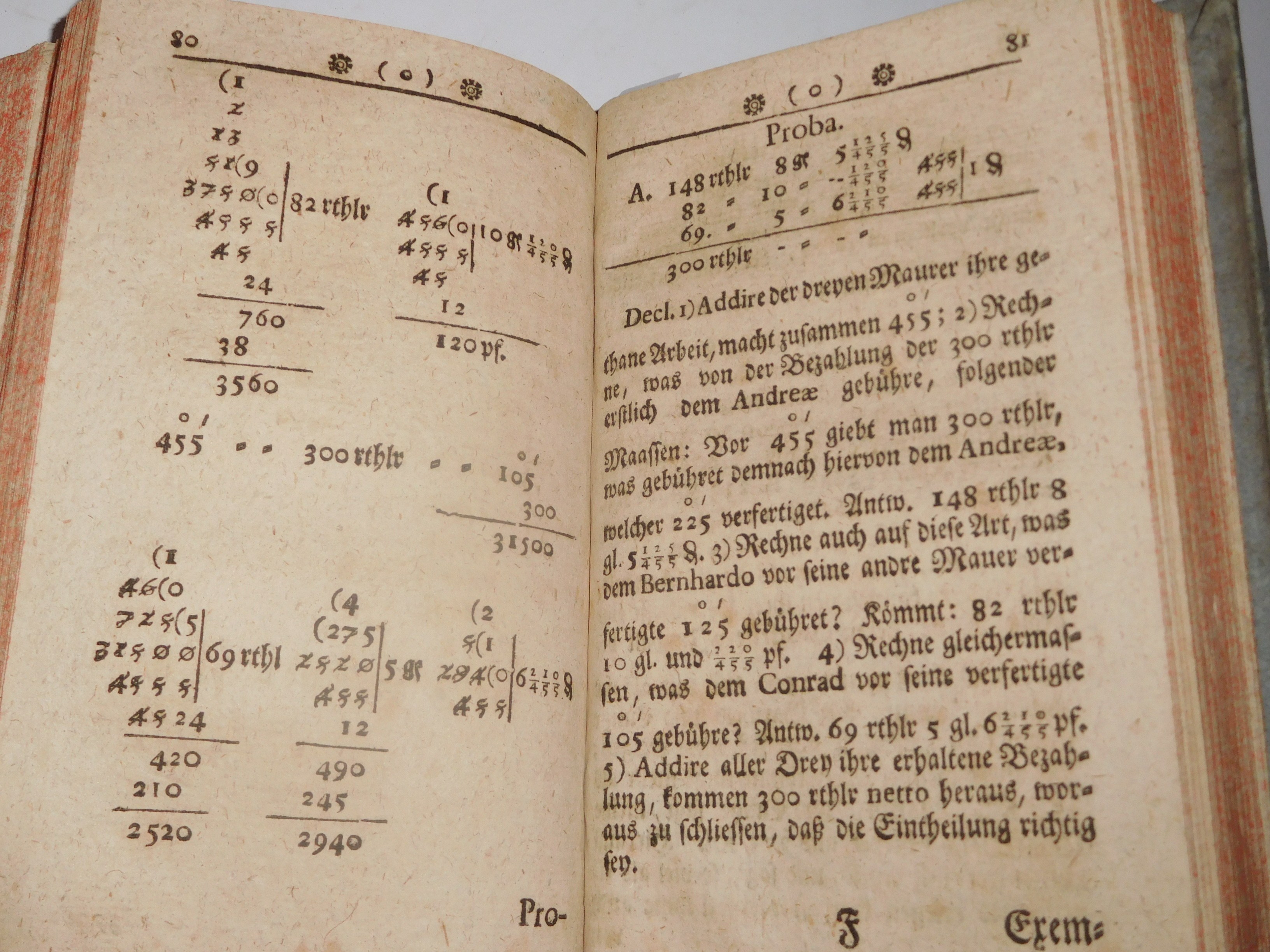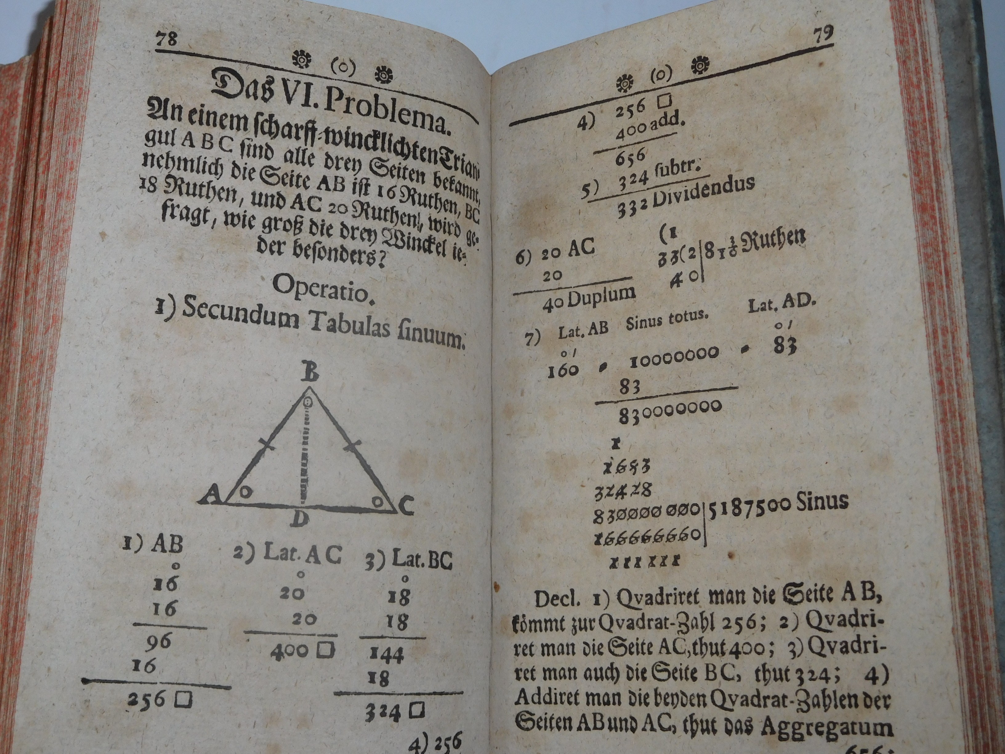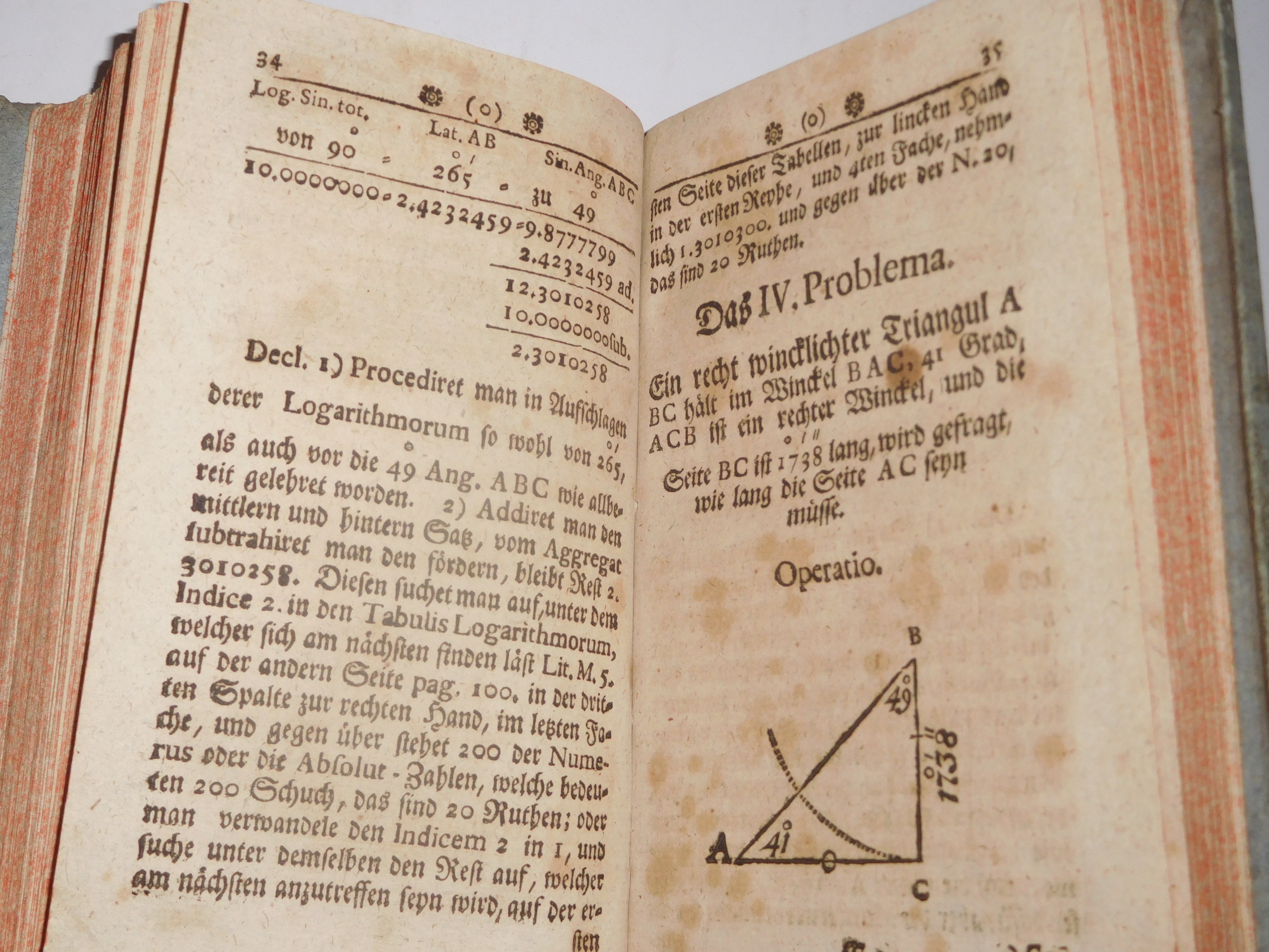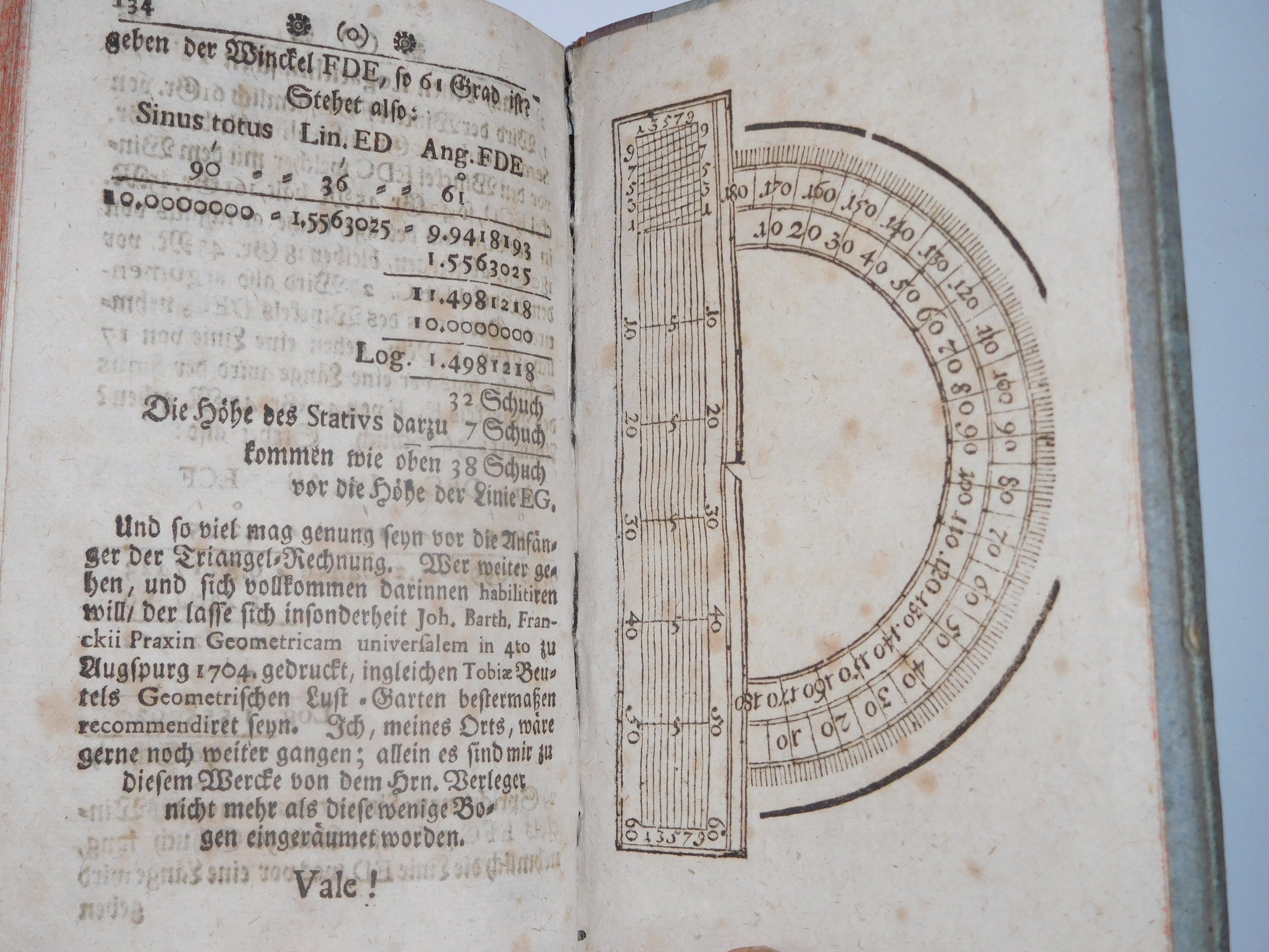 33. PESCHECK CHRISTIAN, Rechnender Feld-Mässer, Oder Geometra: Welcher Die, bey der Geometrie eingeführte und so genannte Decimal-Rechnung. (…). PESCHECK CHRISTIAN Selbstlehrender Trigonometra, Oder Dreyeck-Mässer (…). Elementa Matheseos in novam et facilem methodum digesta, ad usum studiosae juventutis collegii Wratislaviensis, societatis Jesu (…).