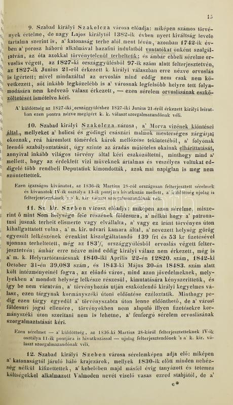 1843 Tudósítása a' sérelmek és kivánatok rendbesedésére az 1843/4 országgyűlésérül kiküldetett országos választmányának. [Batthyány Imre főlovászmester elnöklete alatt] A munka hét r észben mutatja be a vármegyék közös és egyéni sérelmeit és kívánatait, a Horvát-Dalmát és Szlavón területek, a szabad királyi városok, a megválaszolatlan és az 1840. országgyűlésen már felterjesztett és most a király elé felterjeszteni kívánt, összegyűjtött sérelmek. 21+9+16+71+10+5 p. Kiadói papírkötésben