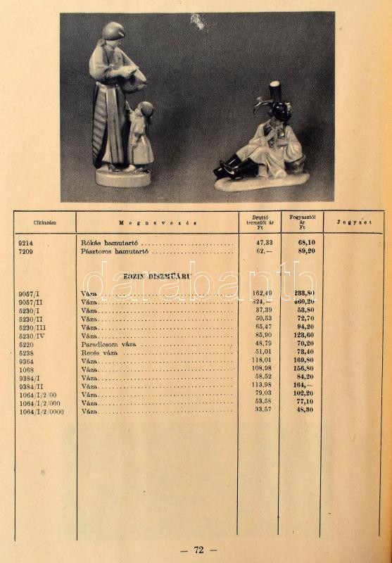 1955 Üveg- és porcelánáruk kereskedelmi árjegyzéke. Belkereskedelmi Minisztérium kiadványa. Bp., 1955....