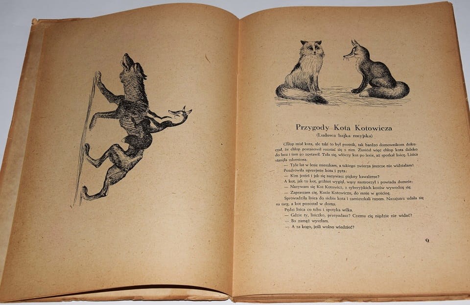 24 BAJKI LUDOWE NARODÓW ZWIĄZKU RADZIECKIEGO. SPÓŁDZIELNIA WYDAWNICZA"WSPÓŁPRACA", WARSZAWA 1949r., str. 86, [2], format 30,5 x 21,5cm. Wybrała i opracowała Maria Górska, Okładkę i ilustracje projektował Bolesław Ginin. OPRAWA MIĘKKA, STAN Dobry+, niewielkie przybrudzenia, naddarcie oprawy na grzbiecie (góra) widoczne na foto,