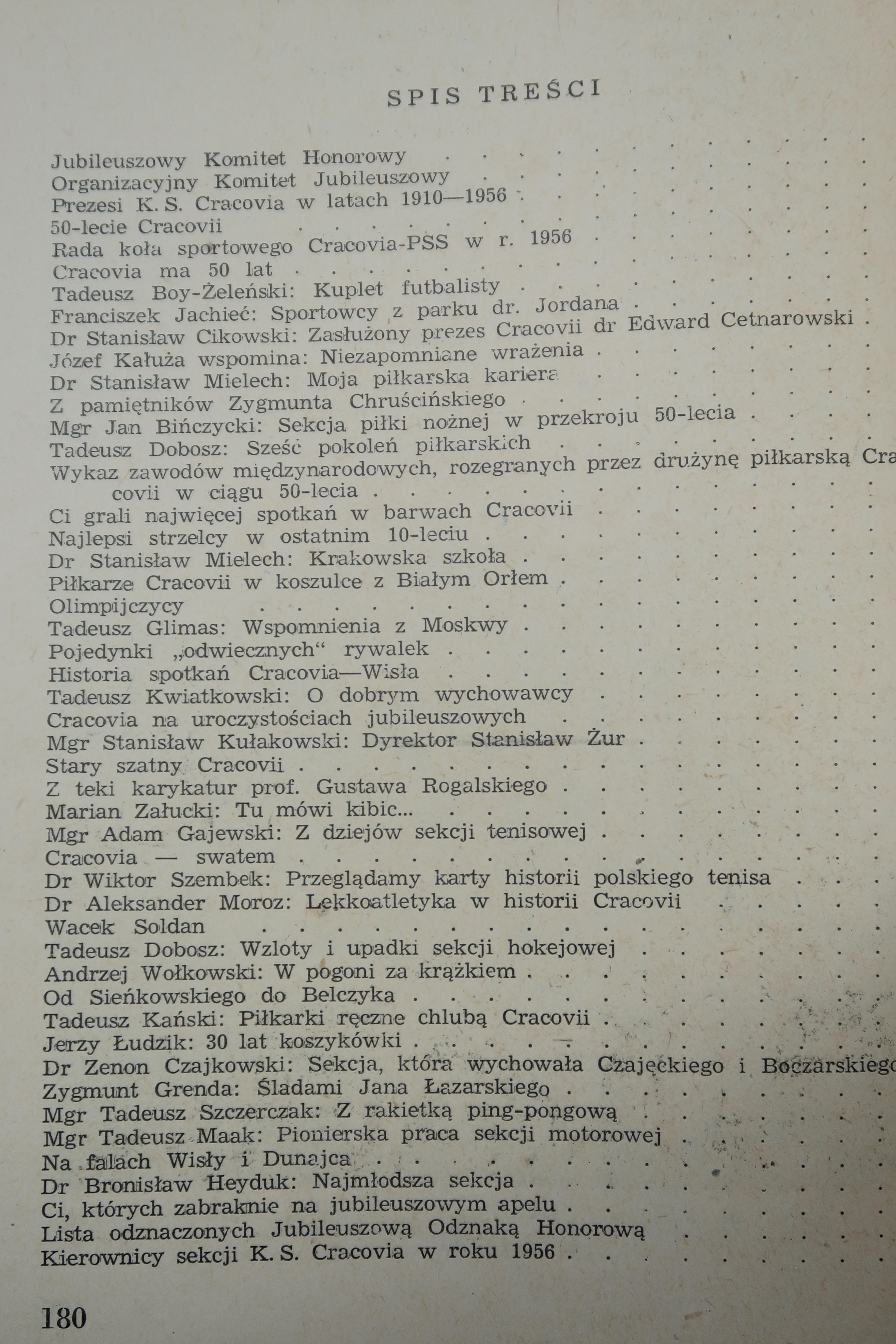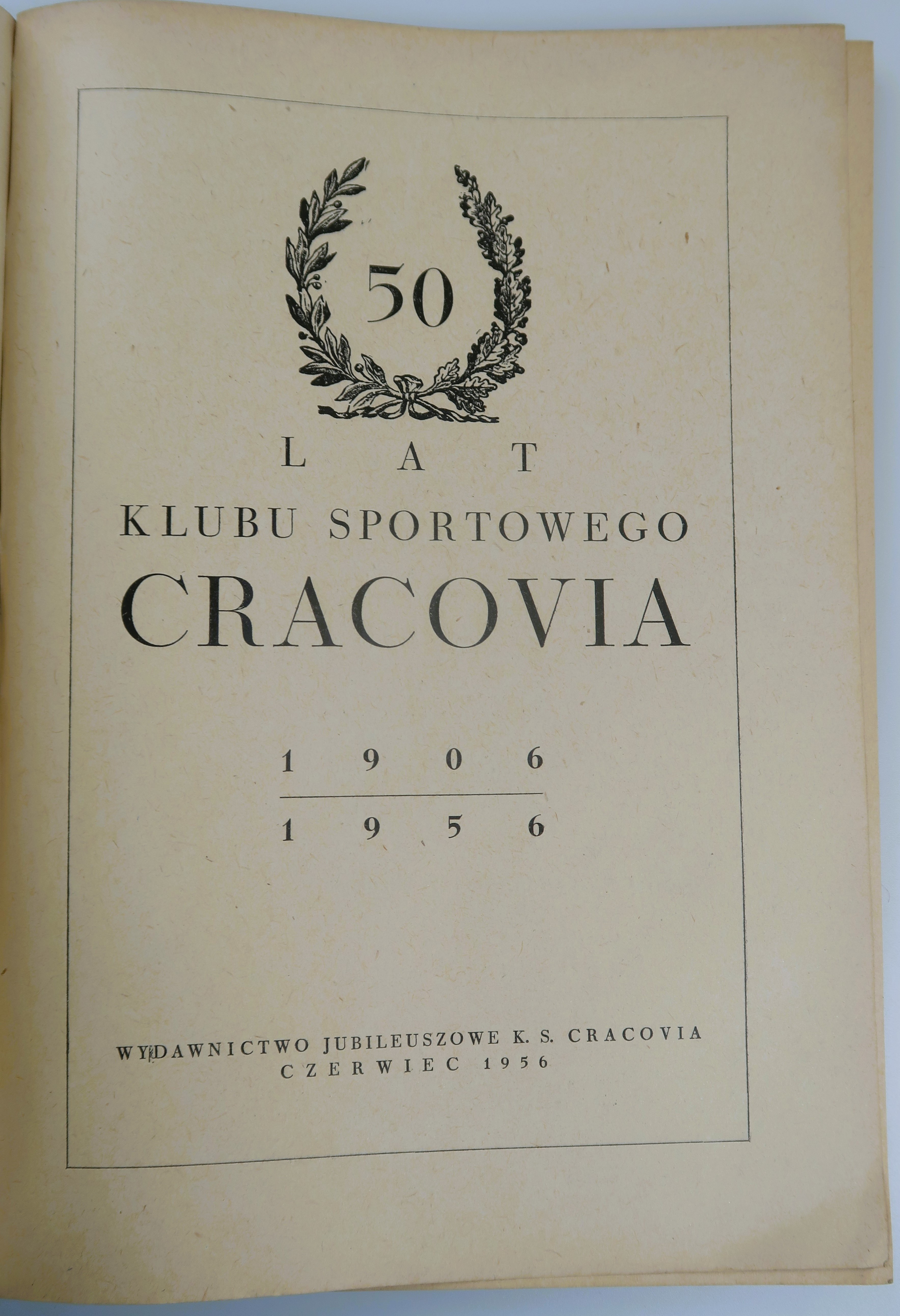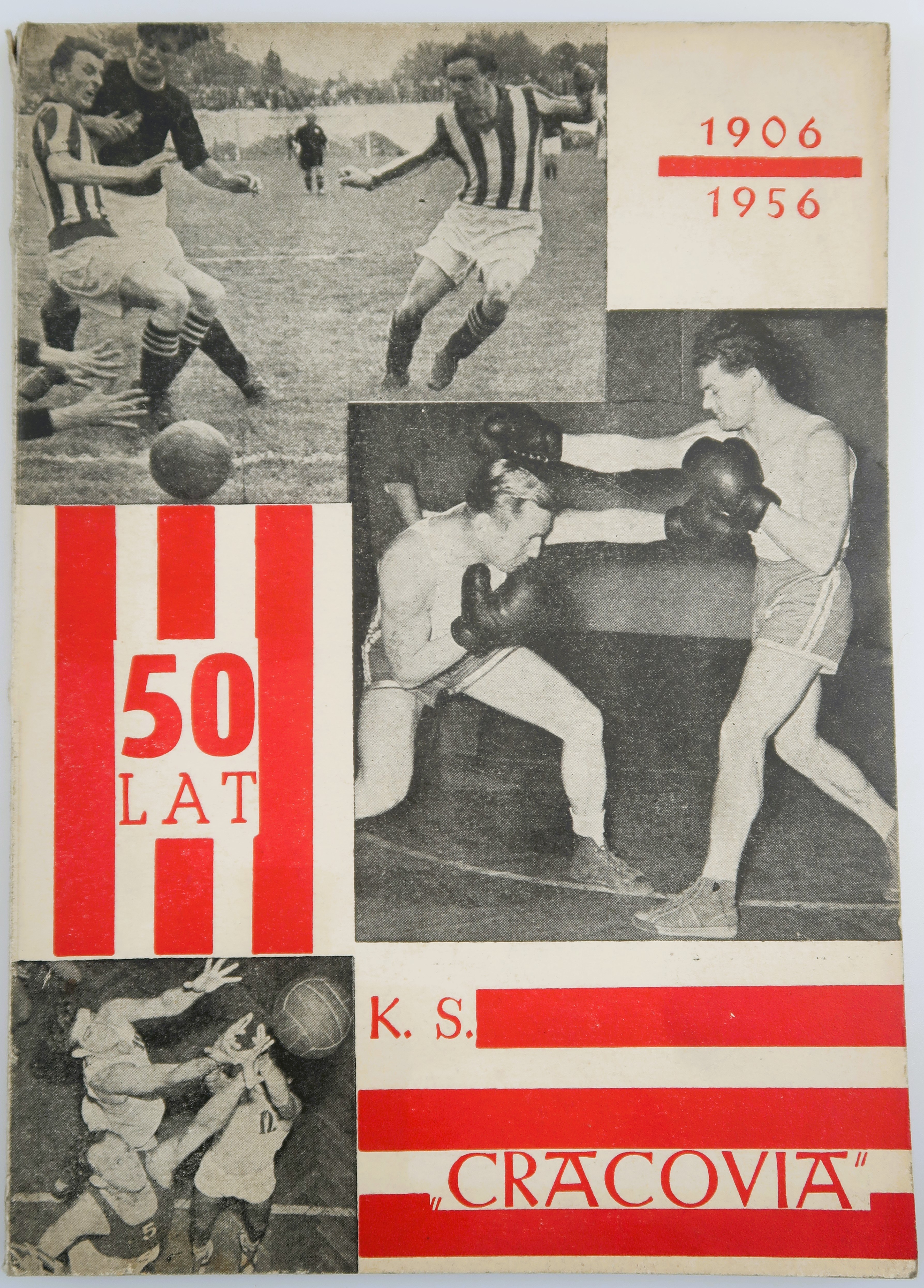 WYDANIE JUBILEUSZOWE K. S. CRACOVIA, oprac. Tadeusz Dobosz, Stanisław Kosiński, Antoni Ślusarczyk, Kraków 1956, s. 180, wym. 17 x 24, oprawa miękka z nieznacznymi obtarciami i zabrudzeniami, wewnątrz stan bardzo dobry.
