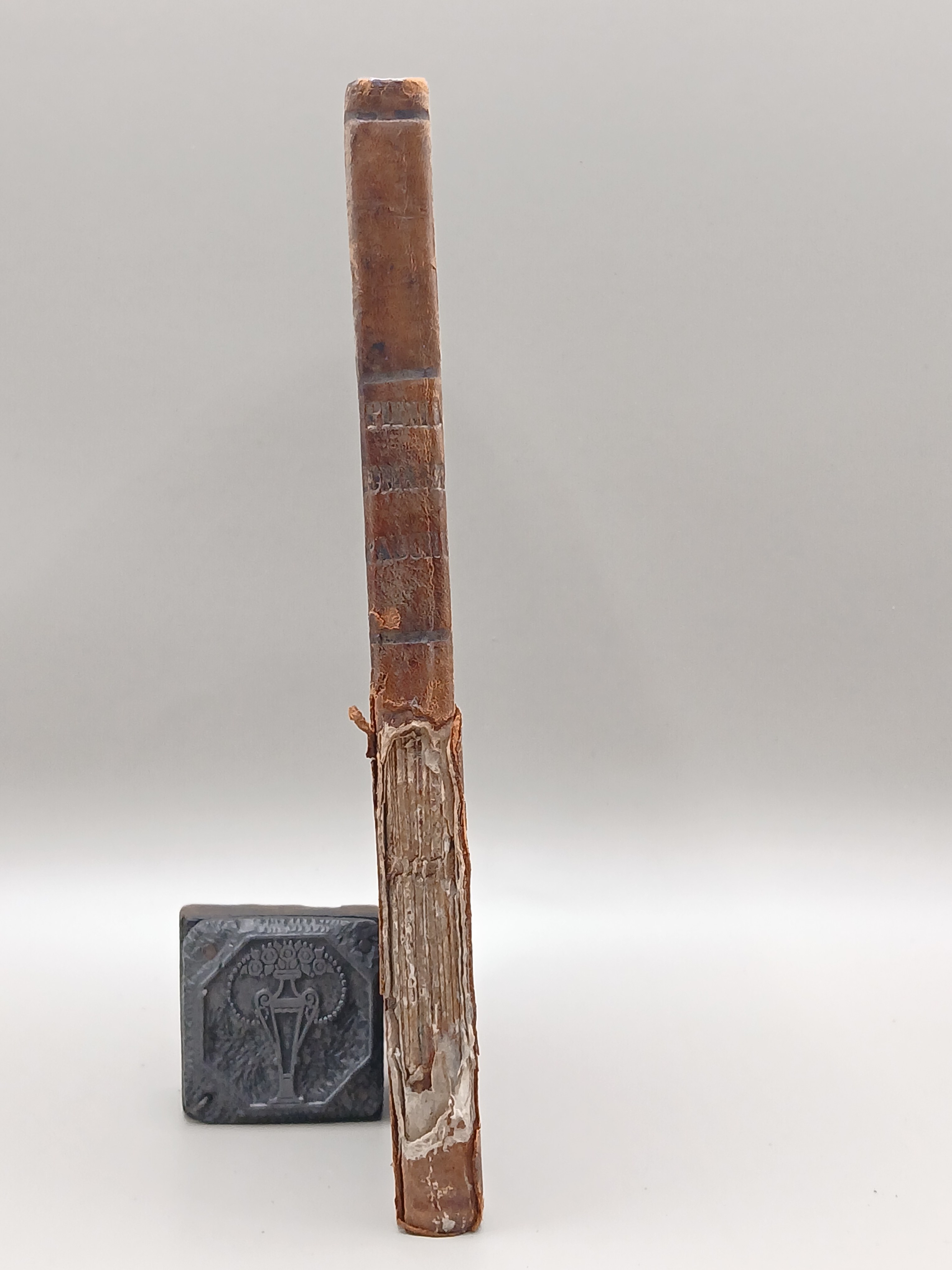Na jednej ze stron notka ołówkiem: nabyto na licytacji bibljofilskiej. Nieaktualne pieczęcie własnościowe, w tym Biblioteki Mogielnickiej hrabiów Starzeńskich (biblioteczna pieczęć z herbem Lis) i Biblioteki Narodowej, do której książka zapewne trafiła po wojnie (pieczęć anulowana stemplem: wydano z dubletów Biblioteki Narodowej).